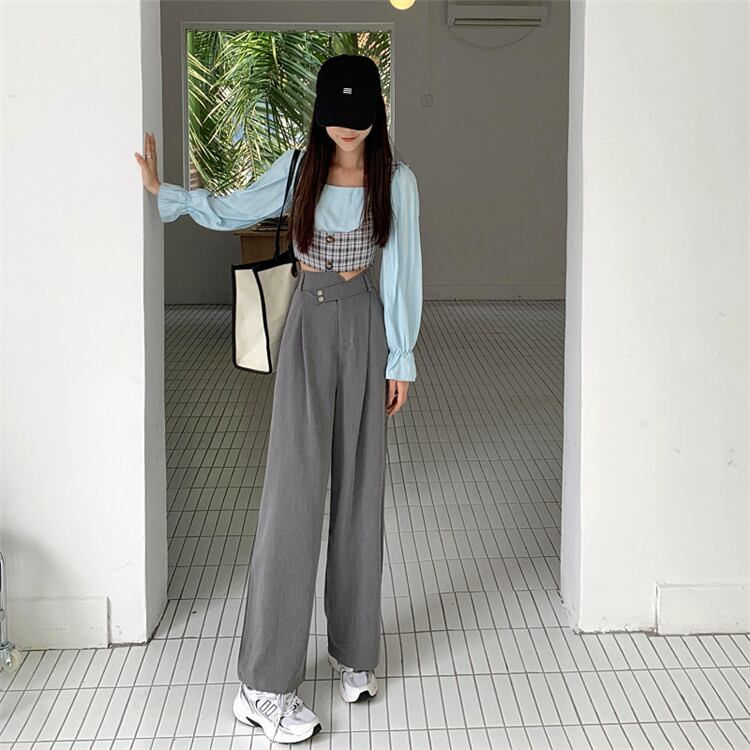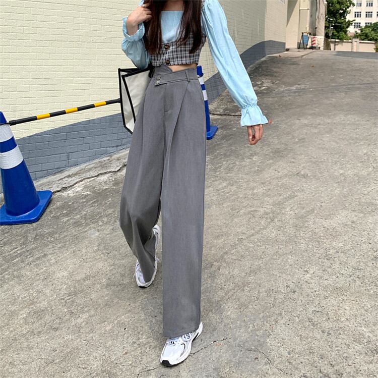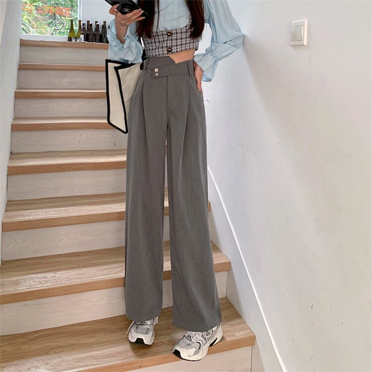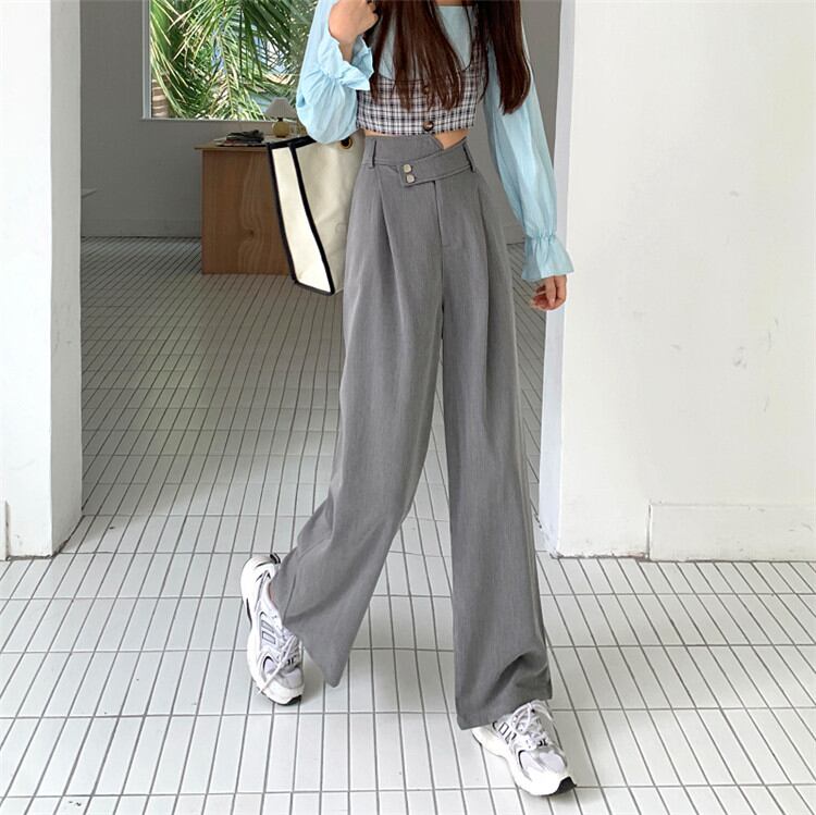 ハイウエスト ゆったりする スリム カジュアルパンツ ワイドパンツ シンプル