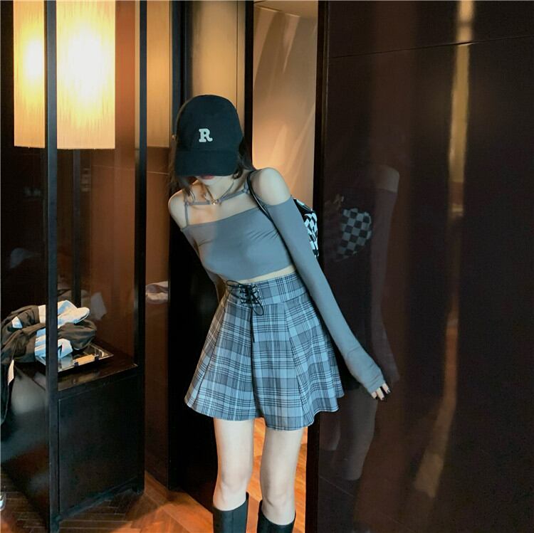 チェック柄 ミニスカート Aライン レトロ プリーツスカート 短いスタイル エレガント カジュアル