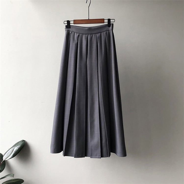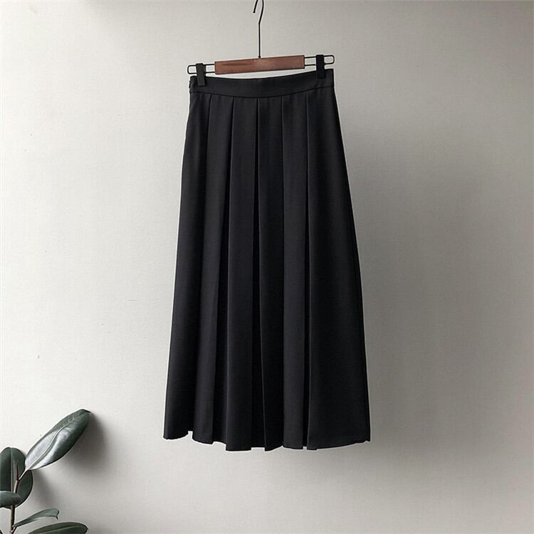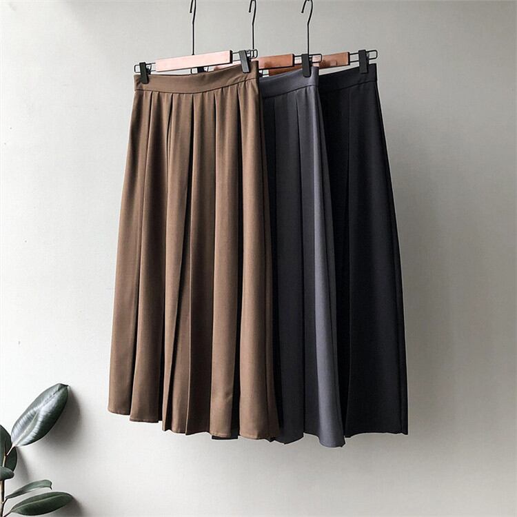 2021年秋 冬 新作 韓国版 気質 ゆったりする 中・長セクション プリーツスカート ピュアカラー