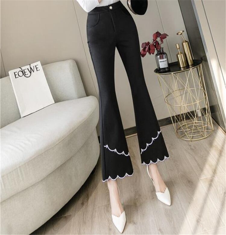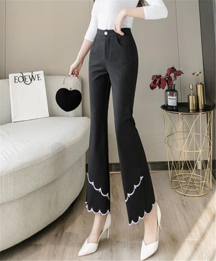 ◎【送料無料】2021年新作 フレアパンツ ハイウエスト ししゅう スリム 九分丈パンツ 気質