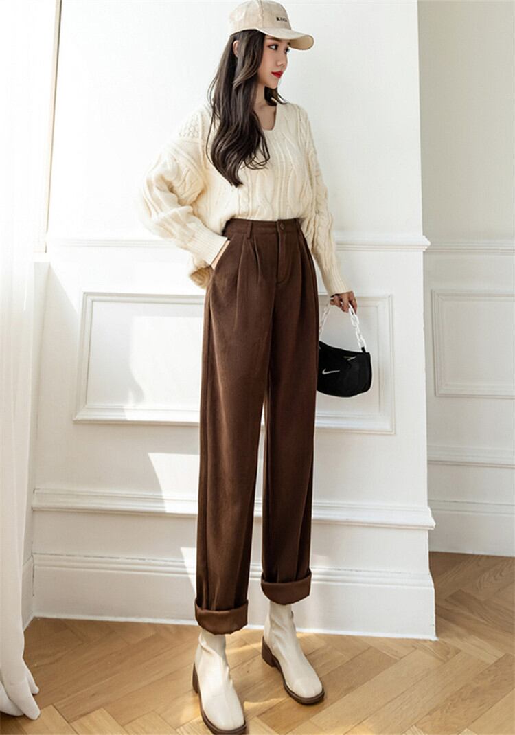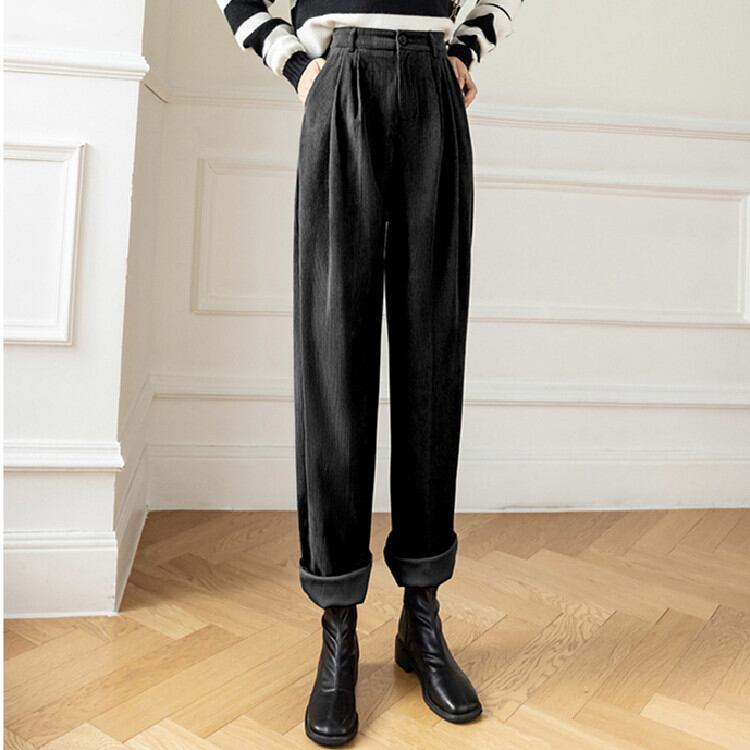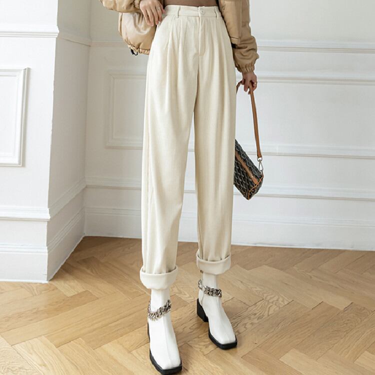 ◎【送料無料】コーデュロイ カジュアルパンツ 気質 2021秋冬 ハイウエスト パンツ スリム