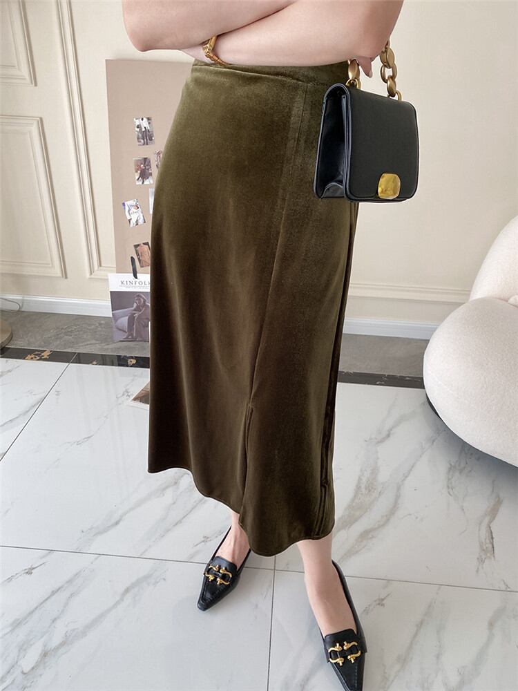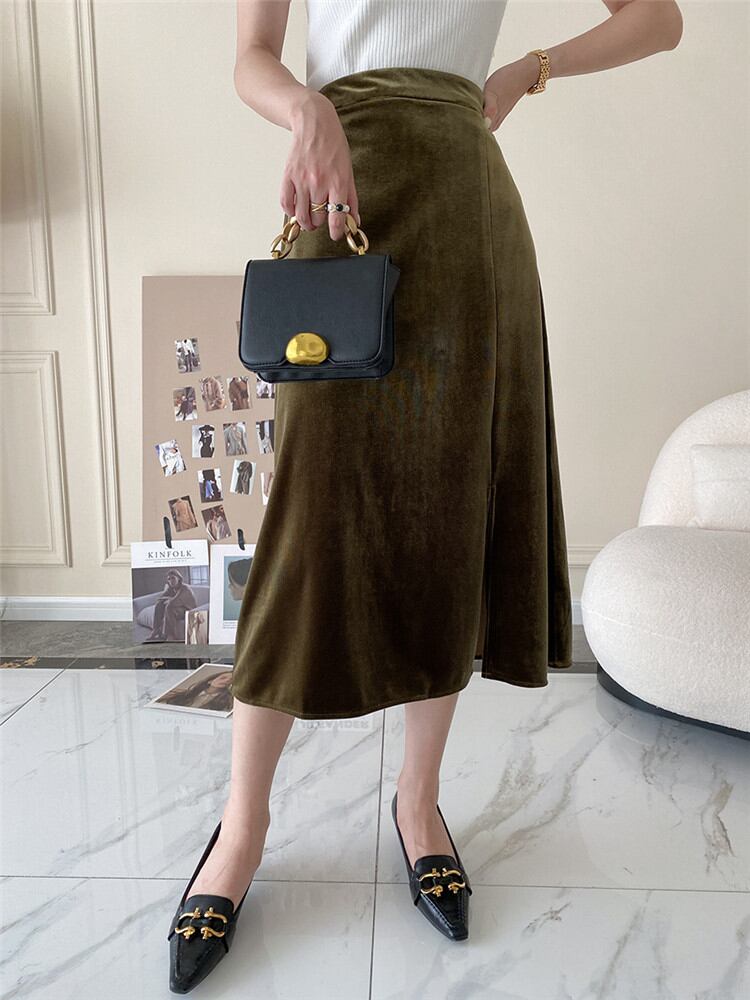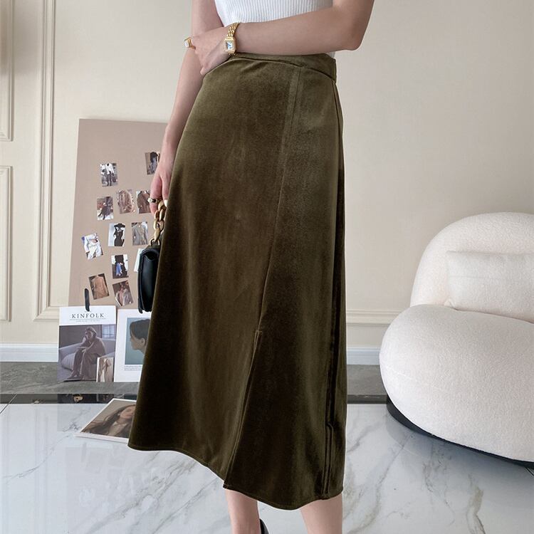 2021秋冬新作 レトロ ハイウエスト スプリット Aラインスカート スカート