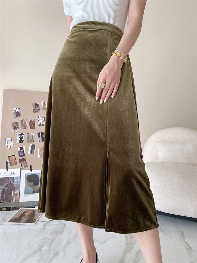 ◎【送料無料】2021秋冬新作 レトロ ハイウエスト スプリット Aラインスカート スカート