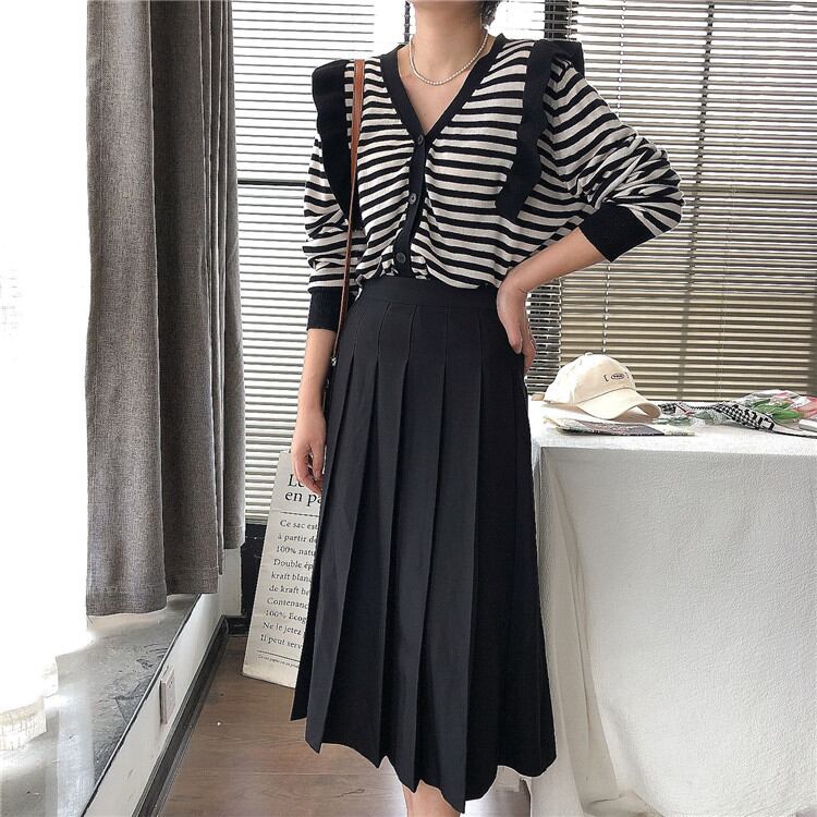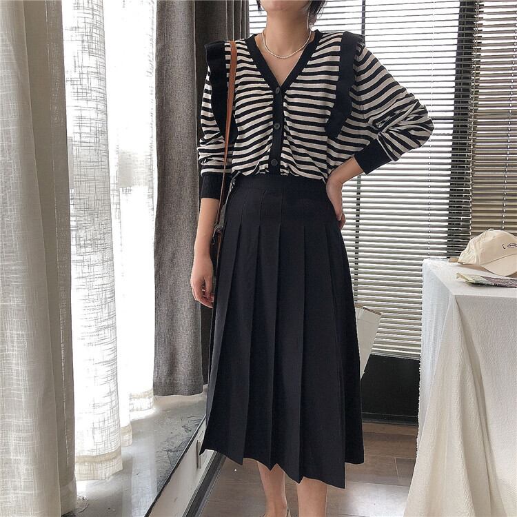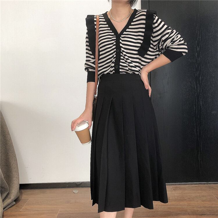 2021年秋冬 Aラインスカート ハイウエスト 気質 プリーツ 中・長セクション スリム