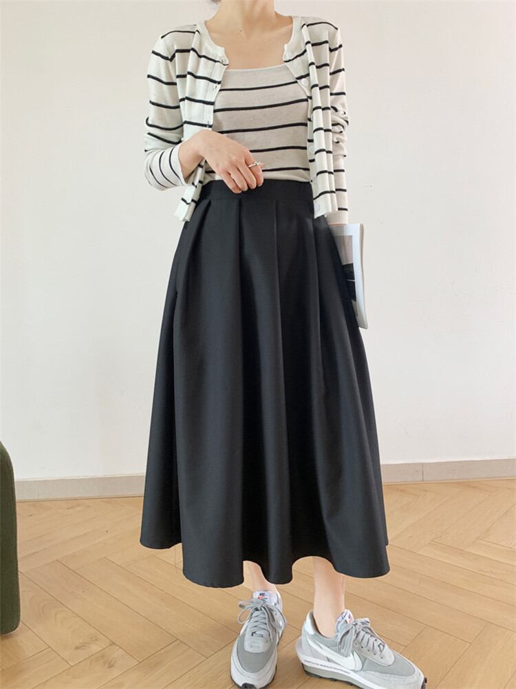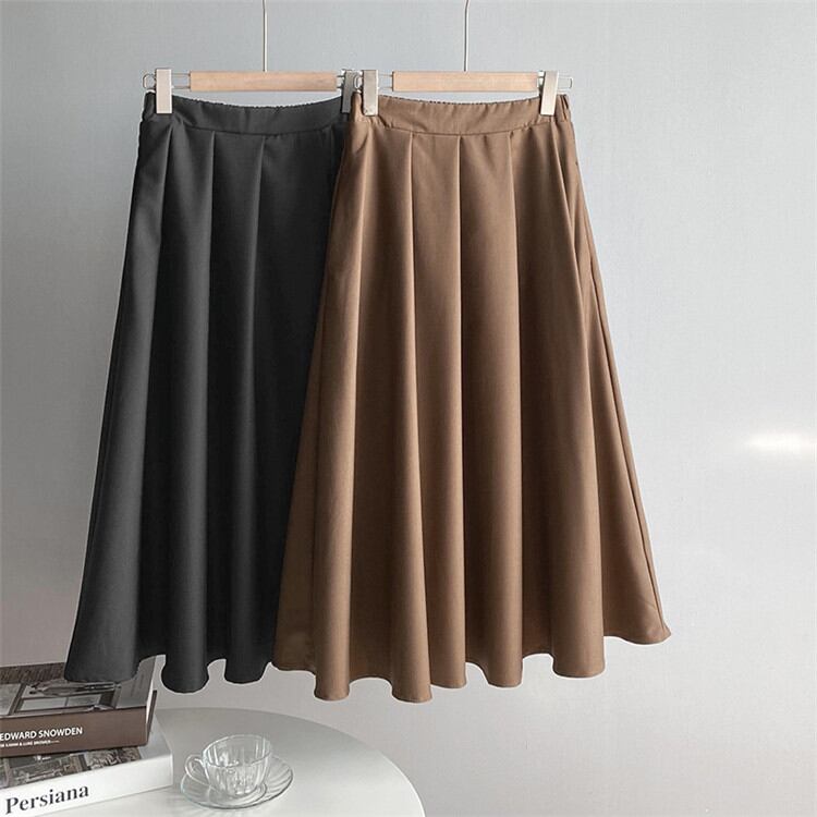 ピュアカラー スカート シンプル 女性 ブラック ハイウエスト スリム 大きい裾 Aラインスカート