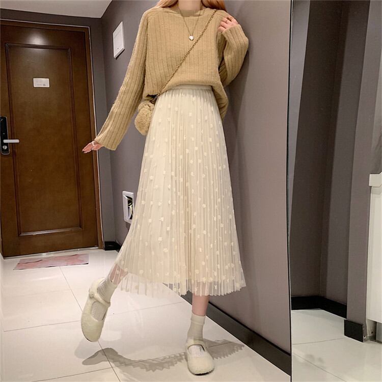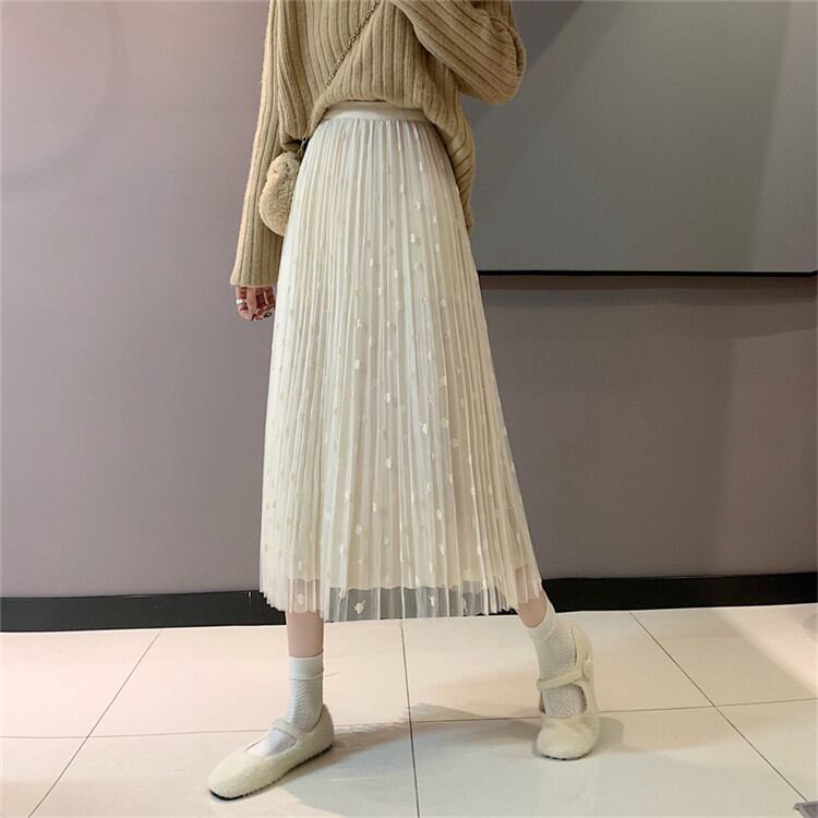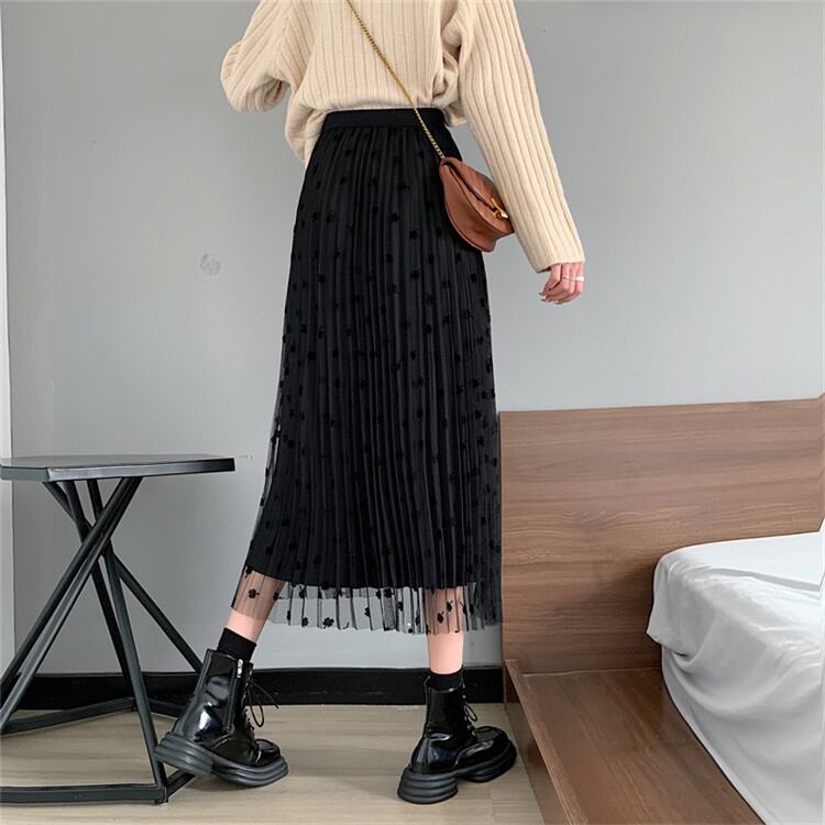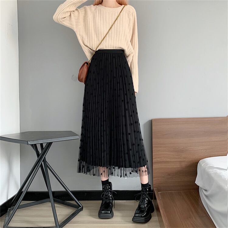 ◎【送料無料】ロングセクション プリーツスカート レーヨン スカート ハイウエスト ロングスカート