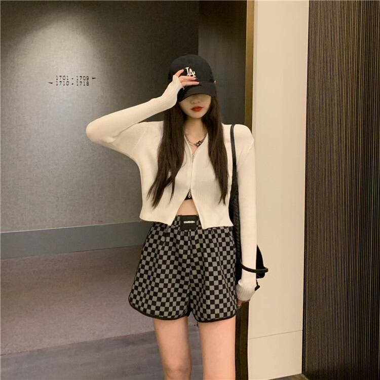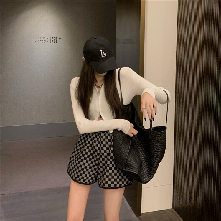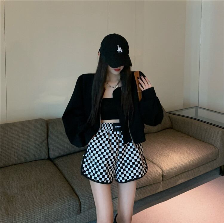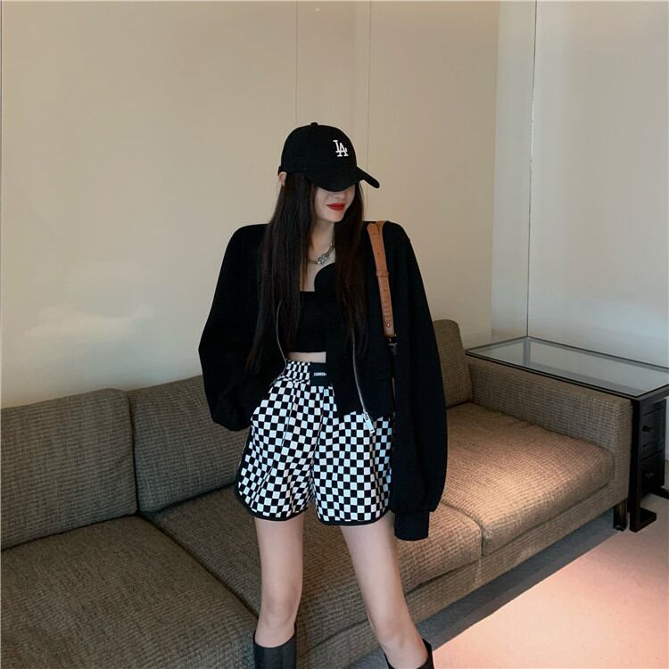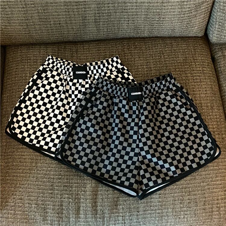チェック柄 伸縮性のあるウエスト ショートパンツ ハイウエスト カジュアル 大人気