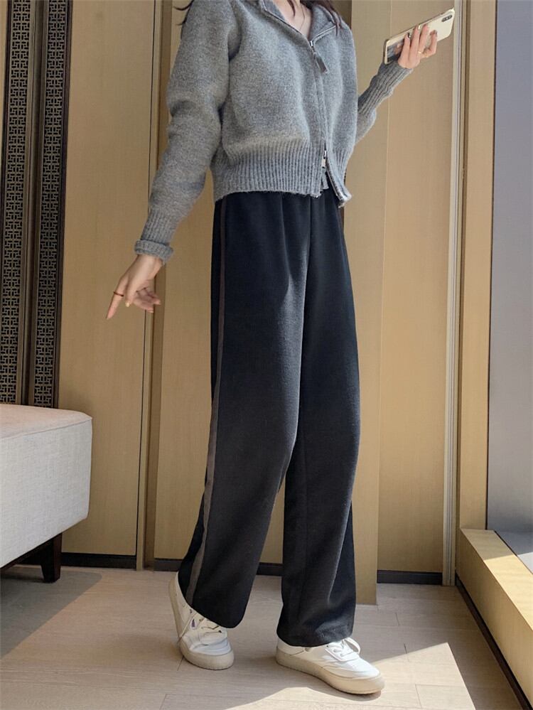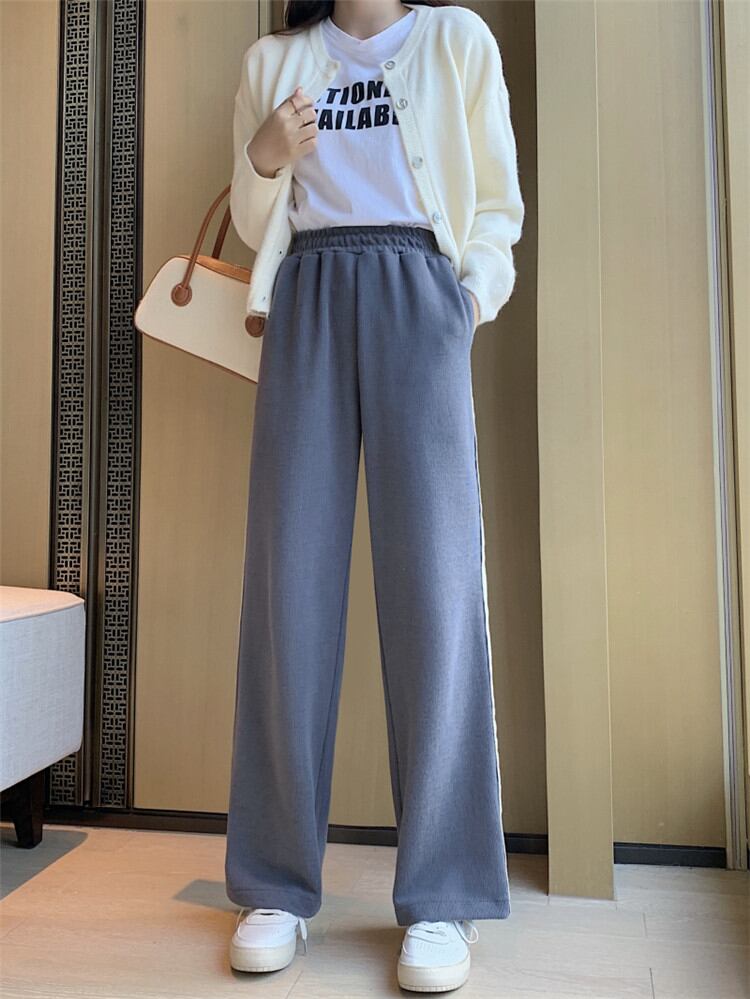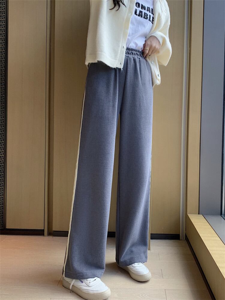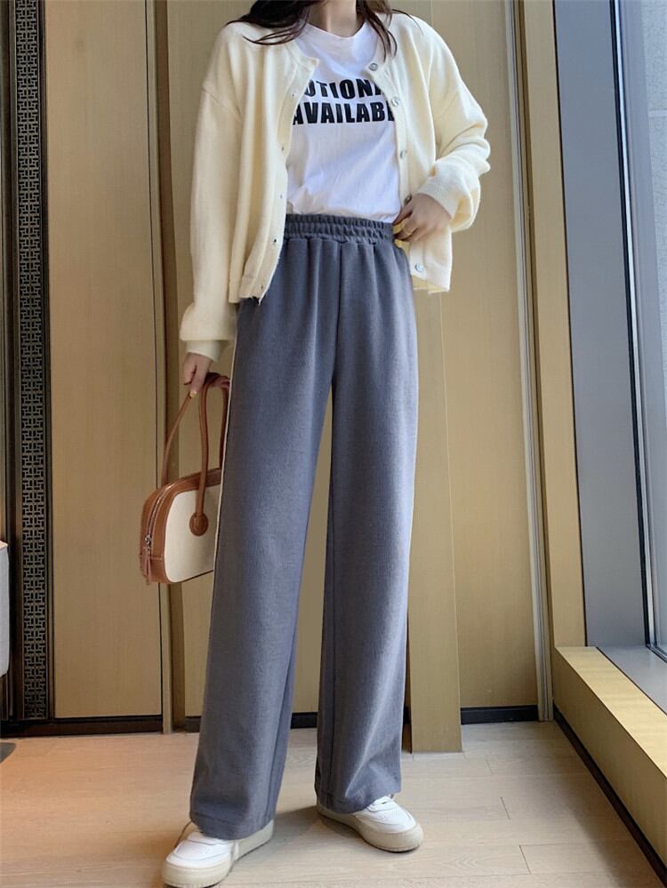 ハイウエスト スリム ワイドパンツ カジュアルパンツ ロングパンツ ゆったりする