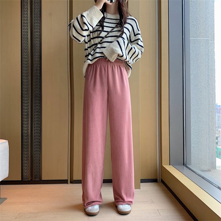 カジュアルパンツ ロングパンツ ゆったりする 大人気 ハイウエスト スリム ピュアカラー