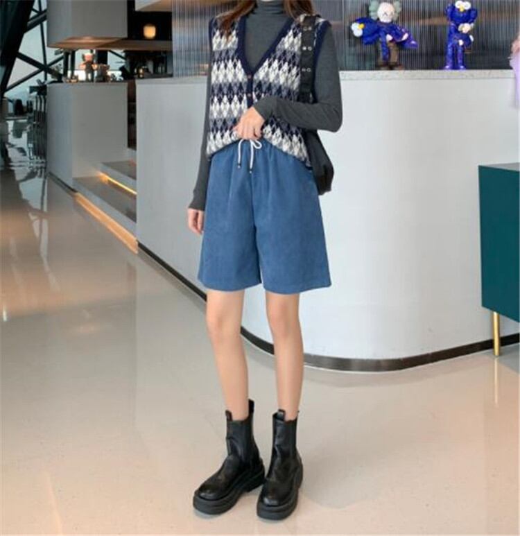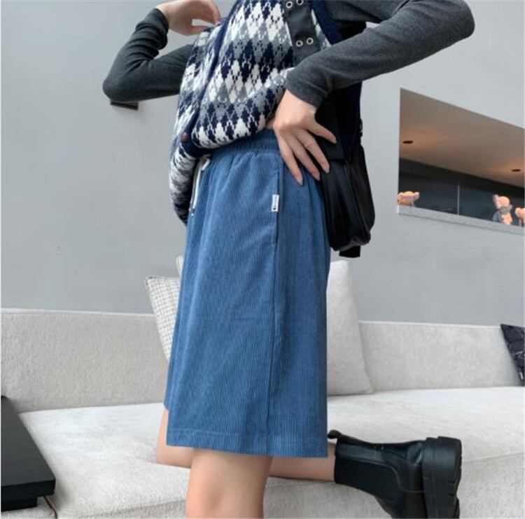 ◎【送料無料】簡単スタイルアップ コーデュロイ ショートパンツ 伸縮性のあるウエスト ゆったりする カジュアル