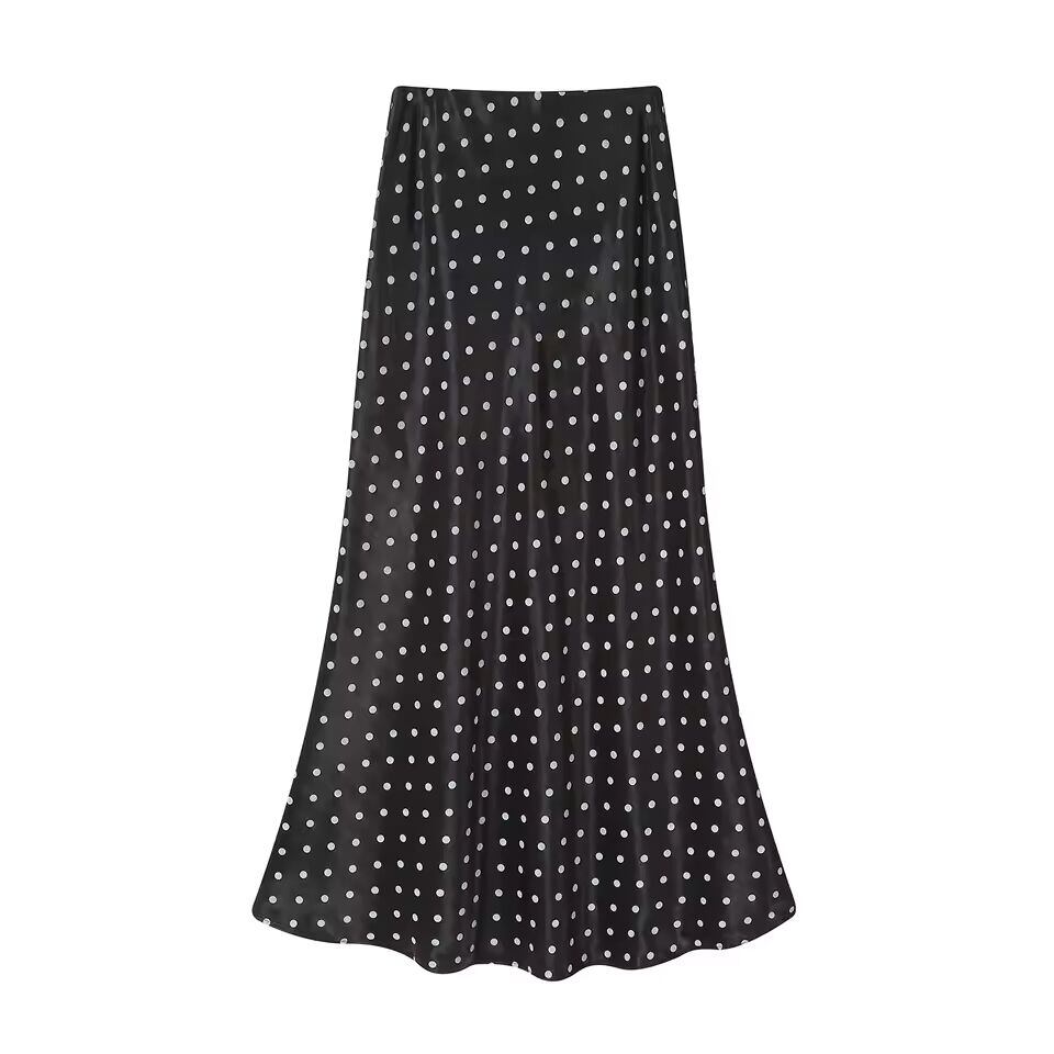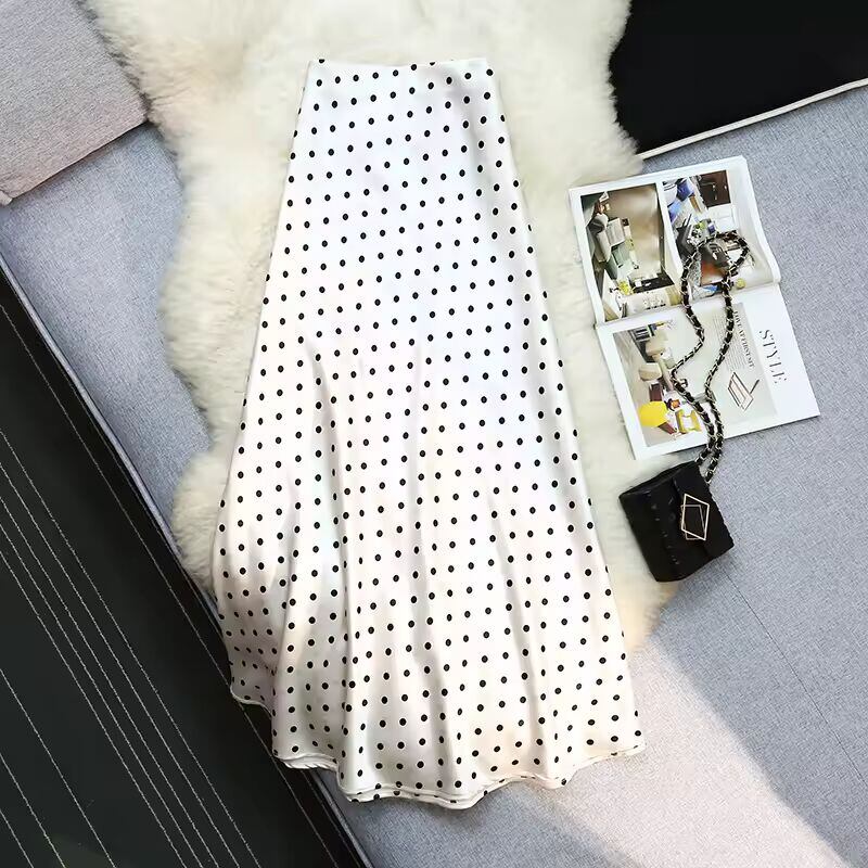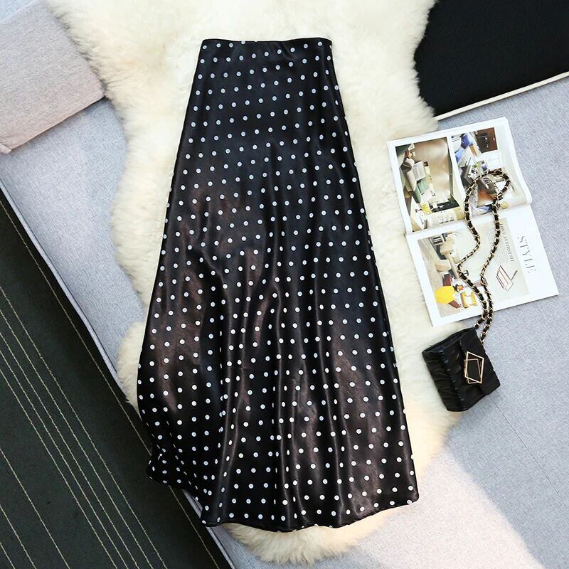 【送料無料◎】 Seoulish ヴィンテージポルカドットサテンマーメイドスカート女性のための 2025 春夏新作ハイウエストカジュアルミッドレングスの女性のスカート