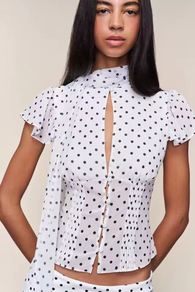 【送料無料◎】 Guiz ホワイト水玉ボディコンスカートとトップセット、ミニスカートパンツ、セクシーなショートスカート、ファッショナブルなスカート、カジュアルスタイルのセクシーセット、ローウエストスカートパンツ、水玉トップ