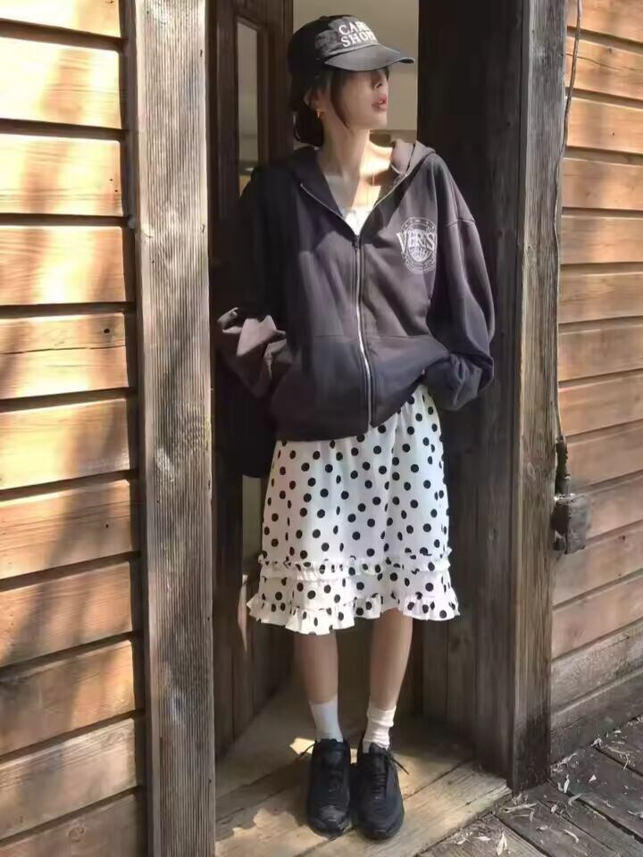 原宿系、エモ、モード…ジャンルを飛び越えて、自由な感性で楽しむ一着。手に入れた瞬間から、新しい自分が始まる。そんな高揚感とともに、最高のスタイリングを楽しんでください。 #ドット柄スカート #原宿系ファッション #ストリート女子 #個性派スタイル