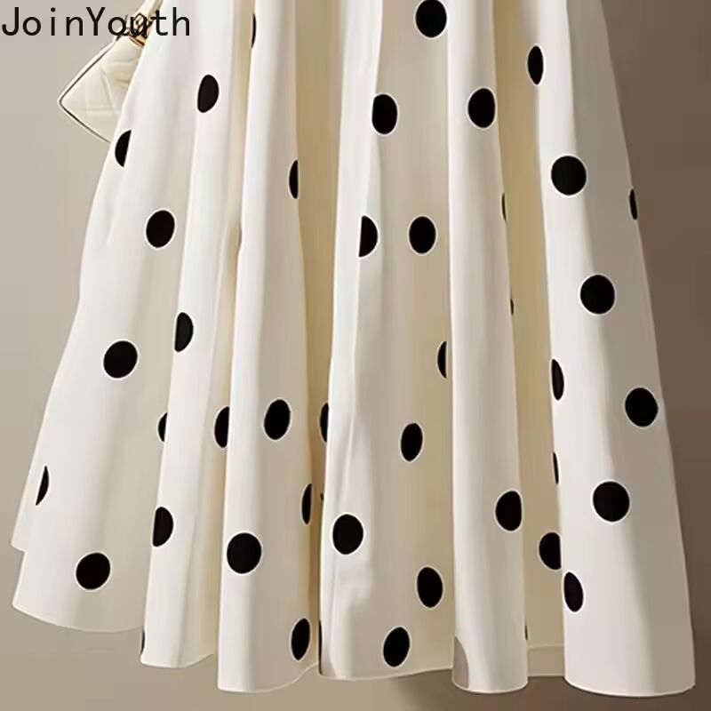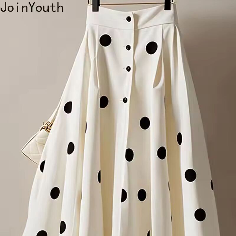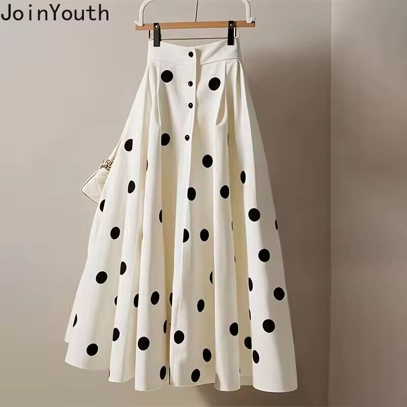 【送料無料◎】 女性用ホワイトポルカドットスカート,ハイウエスト,aライン,ヴィンテージ,サイア,ラージスイング,ルーズ,ソフト,韓国,2020