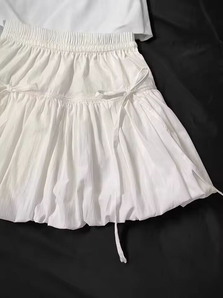 【送料無料◎】 ハイウエスト A ライン ミニスカート バタフライ ノット花のつぼみデザイン女性用夏痩身ポルカドット スカート女性用