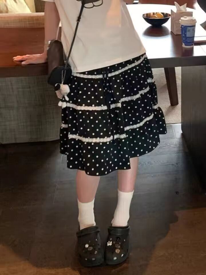 【送料無料◎】 夏のレースの新作水玉模様ケーキスカート レディース 和風スイートカジュアルルーズショートスカート 女性デザイナー シックで可愛い薄手の服