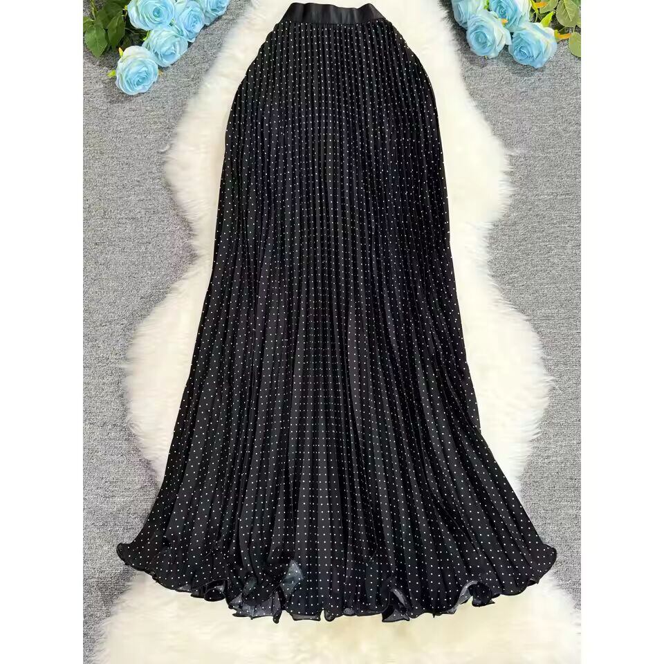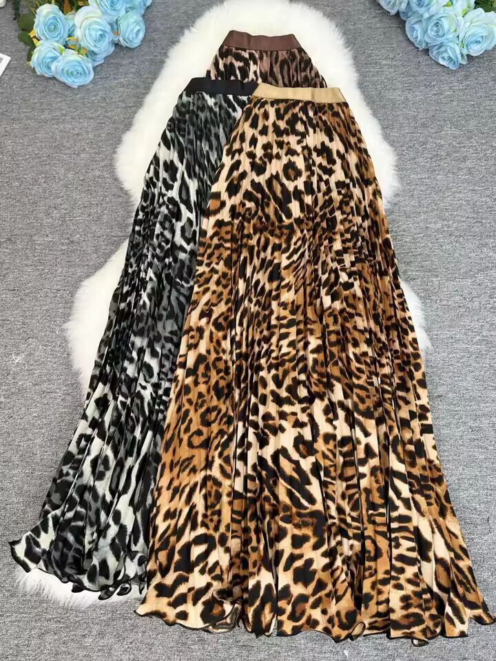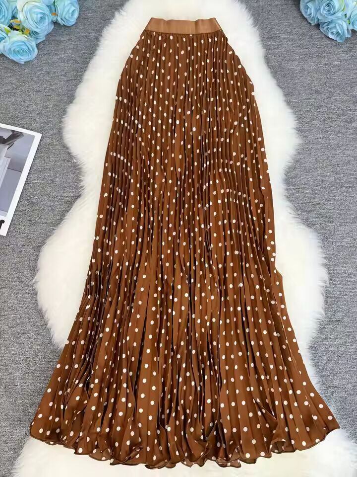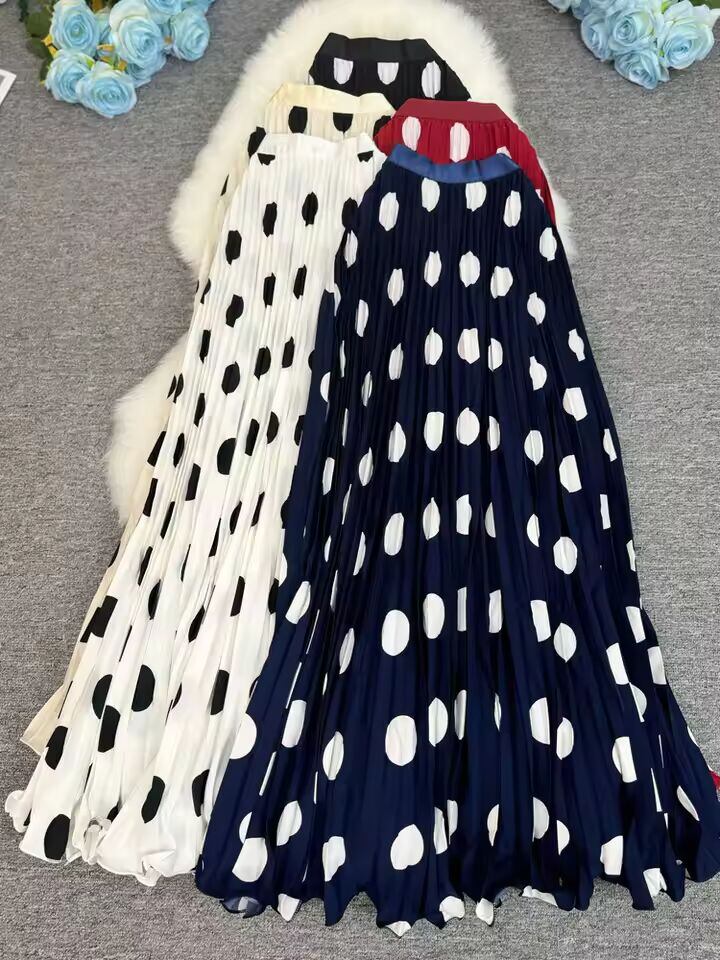【送料無料◎】 ポルカドット柄プリーツロングスカート レディース 2025 春秋 オフィスレディー カジュアル レオパード柄スカート