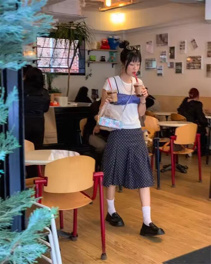 原宿系、エモ、モード…ジャンルを飛び越えて、自由な感性で楽しむ一着。手に入れた瞬間から、新しい自分が始まる。そんな高揚感とともに、最高のスタイリングを楽しんでください。 #ドット柄スカート #原宿系ファッション #ストリート女子 #個性派スタイル