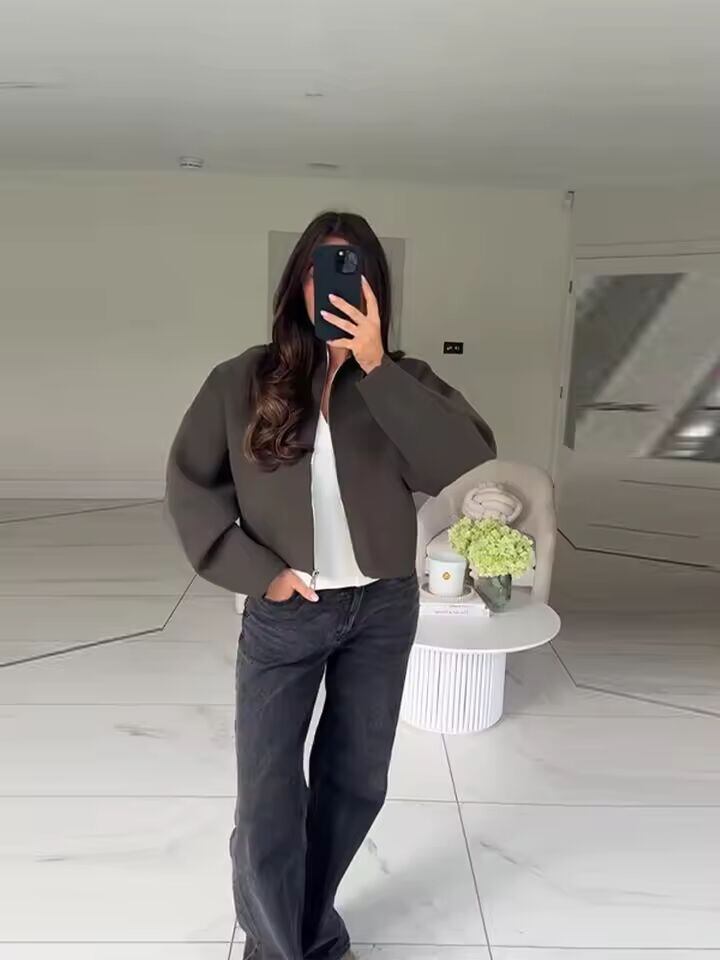 【送料無料◎】 ヴィンテージスタンドカラー レディース クロップドジャケット ジップアップ ルーズ フルスリーブ 厚手 暖かいコート 2025 秋冬 レディース 新作 アウター