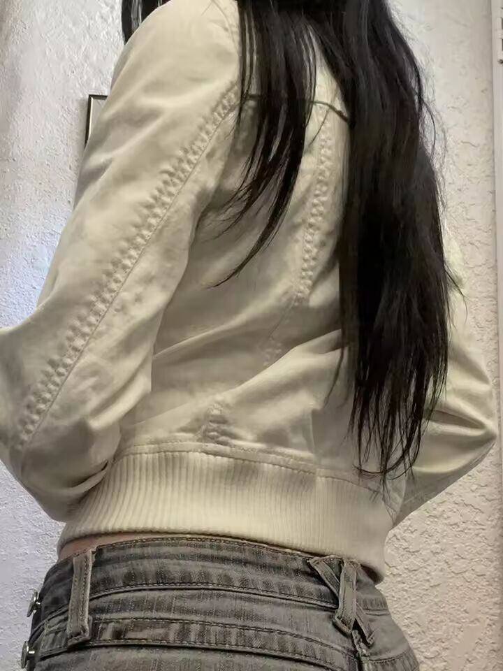 【送料無料◎】 レディースヴィンテージクロップドジャケット,原宿カジュアルコート,スリムフィットジッパー,長袖アウター,y2kストリートウェア,秋