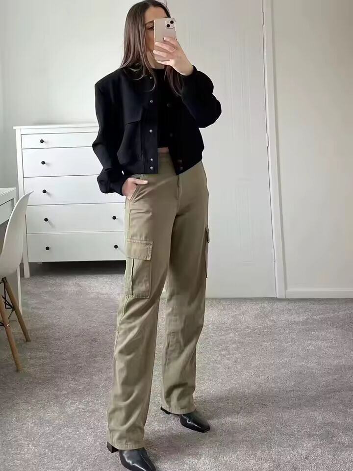 腰位置を高く見せるクロップドジャケットは、脚長効果も抜群。ボリュームのあるボトムスともバランス良く決まり、都会的な着こなしを完成させます。