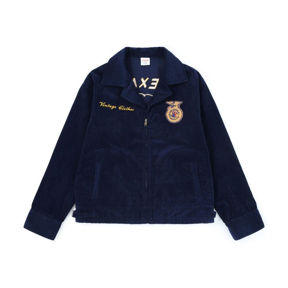【送料無料◎】 コーデュロイ ヴィンテージ 60 年代 デトロイト ネイビー ブルー クロップド レトロ 軽量 ボンバー カウボーイ 刺繍 作業 Ffa コットン トラッカー ジャケット メンズ