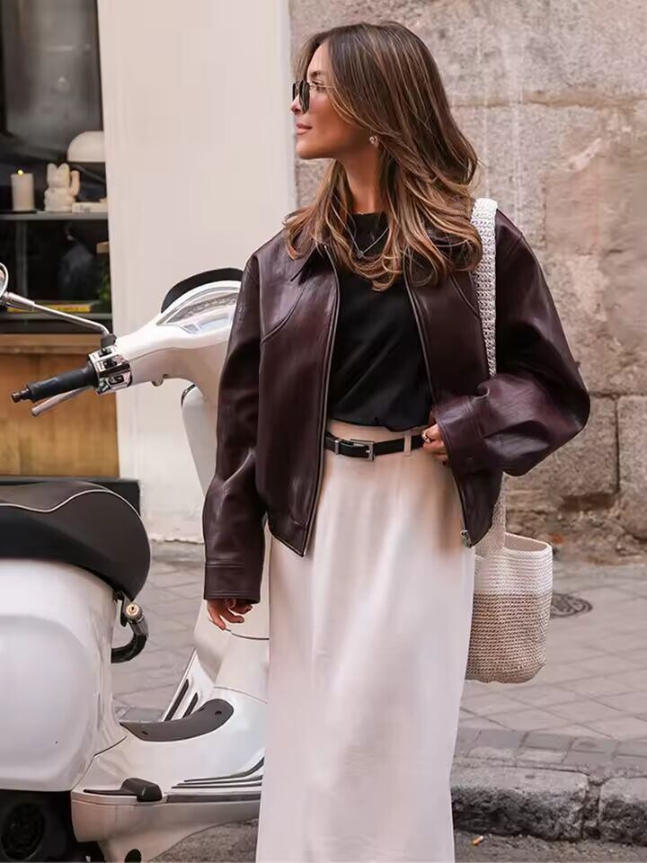 【送料無料◎】 女性用の短い合成皮革ジャケット,エレガントでファッショナブルなジッパー付きのシックな長袖ジャケット,通勤やストリート,秋