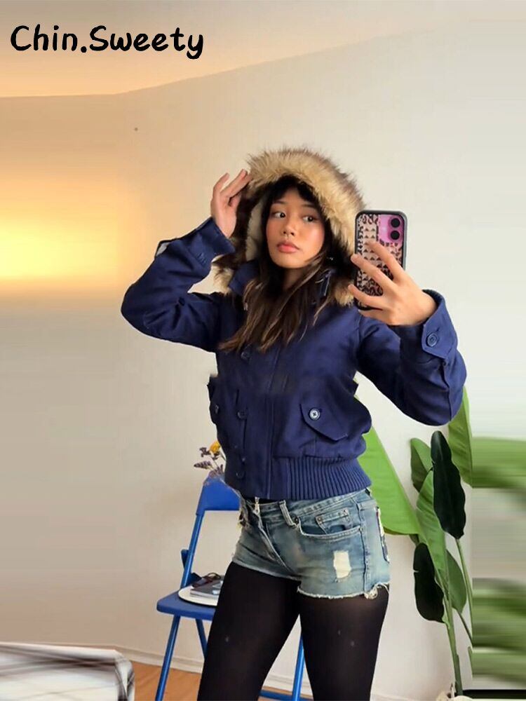 【送料無料◎】 ヴィンテージ風 レディース クロップド フード付きコート ファーカラー 長袖 シングルブレスト ポケット付きジャケット 2025年秋 レディース Y2K 暖かいアウター 新作
