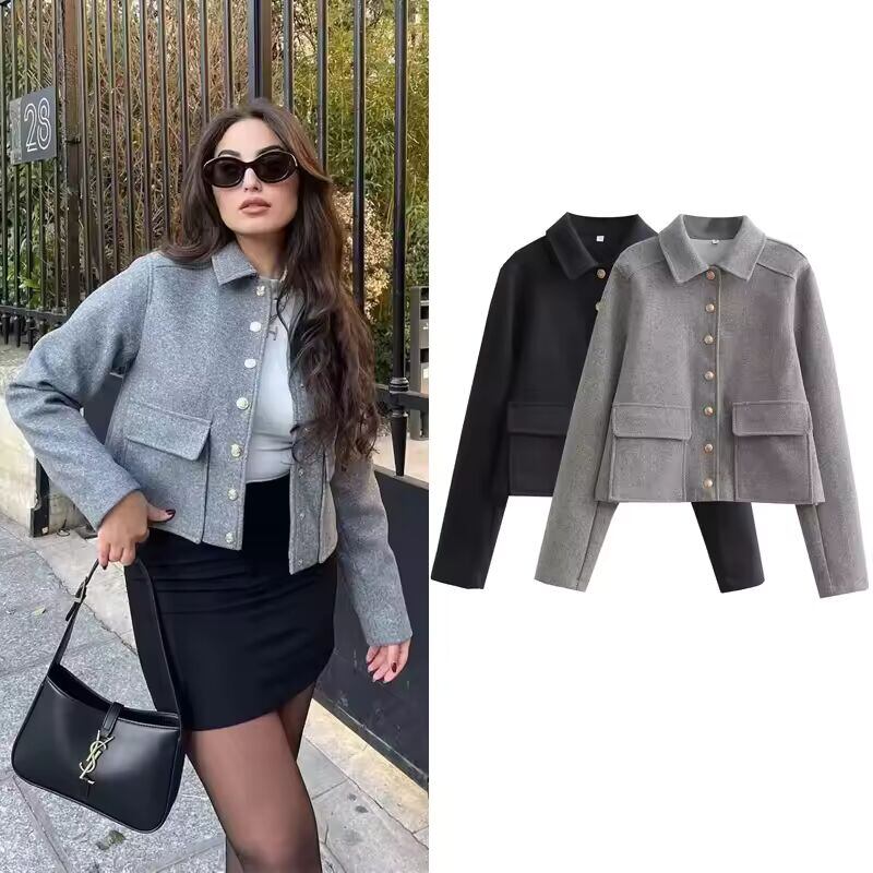 腰位置を高く見せるクロップドジャケットは、脚長効果も抜群。ボリュームのあるボトムスともバランス良く決まり、都会的な着こなしを完成させます。