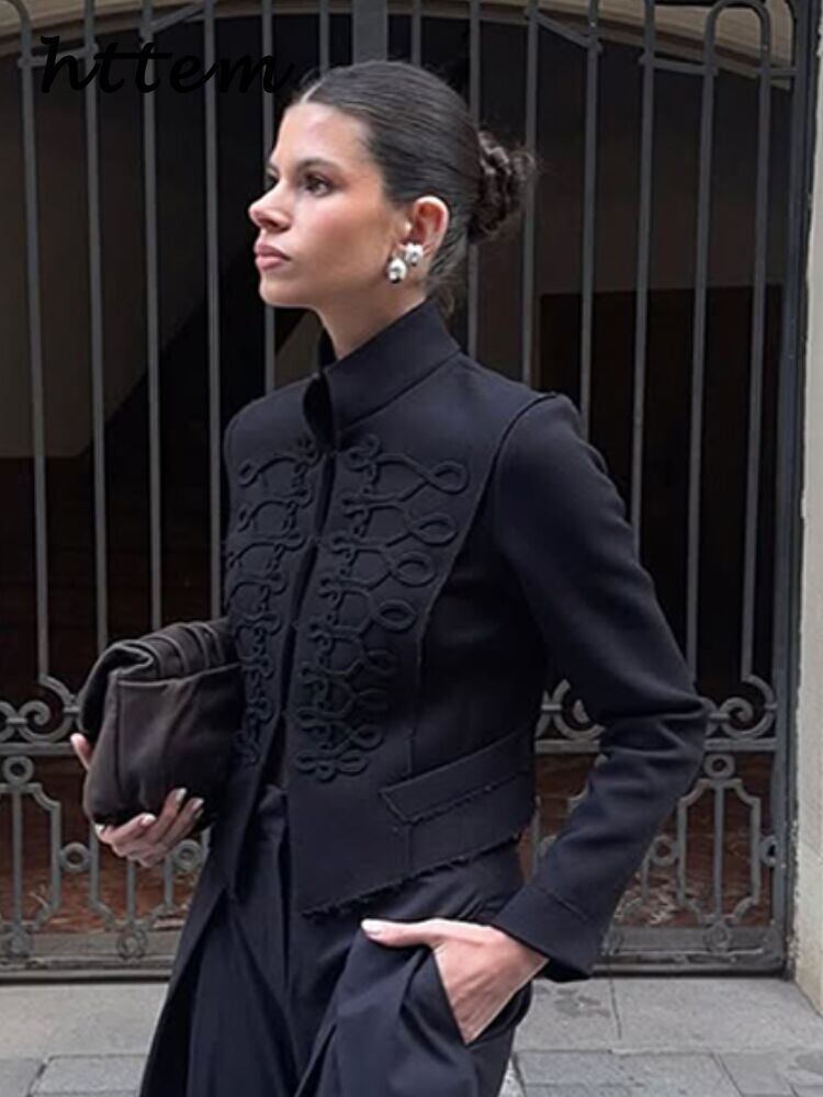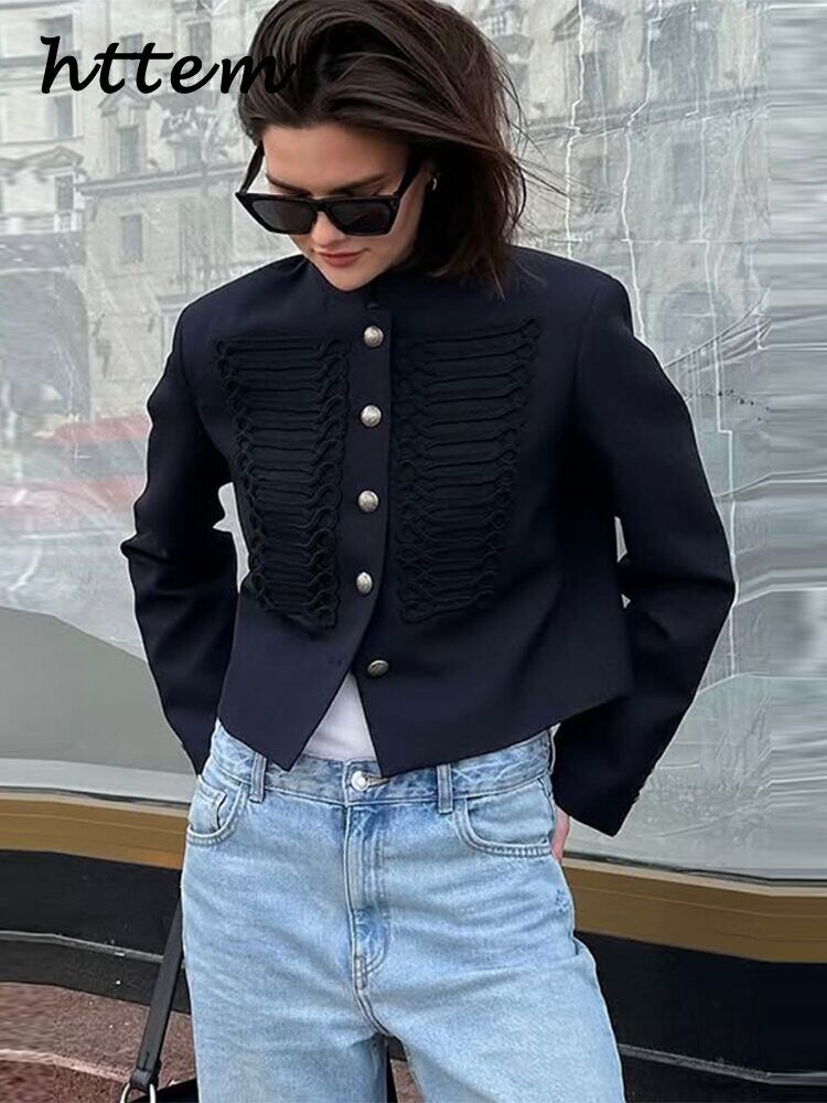 【送料無料◎】 ストリートコントラストベルベットスプライスナポレオンジャケット レディース スタンドカラー 長袖 ボタン クロップドジャケット 新作 レディース デイリーアウター 2026