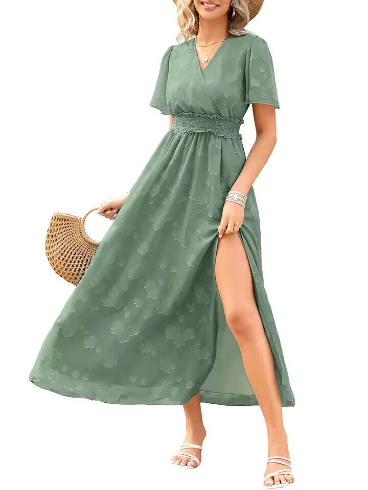 リゾートでの休暇から、大切な友人とのランチ、パーティーシーンまで。周囲の視線を集める圧倒的な存在感で、あなたの魅力を最大限に引き出してくれる一着です。 #パフスリーブワンピース #フェミニンコーデ #リゾートワンピース #韓国ファッション #お呼ばれドレス
