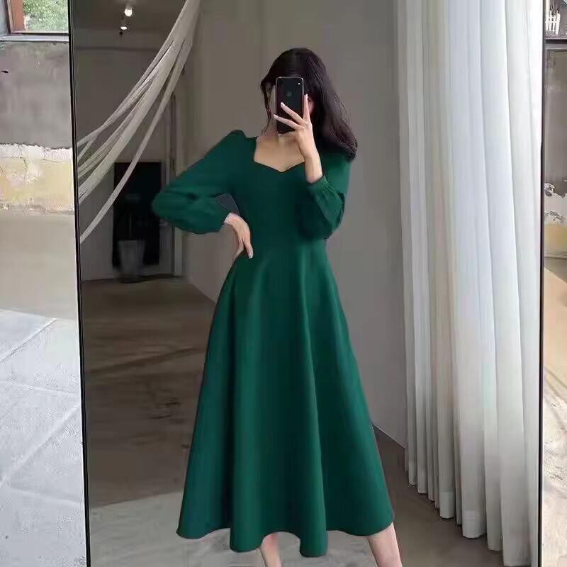 【送料無料◎】 ロングパフスリーブ固体エレガントなドレスの女性の服結婚式のゲスト新年の女性のファッションハイウエストスリムイブニングパーティードレス