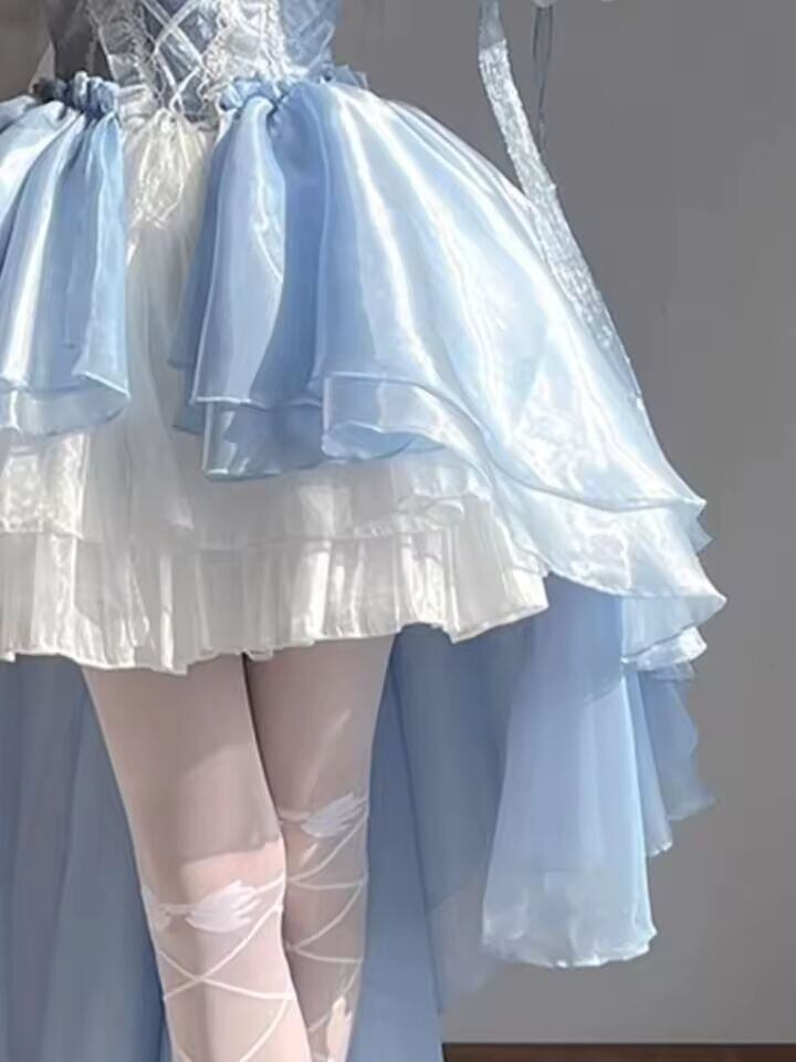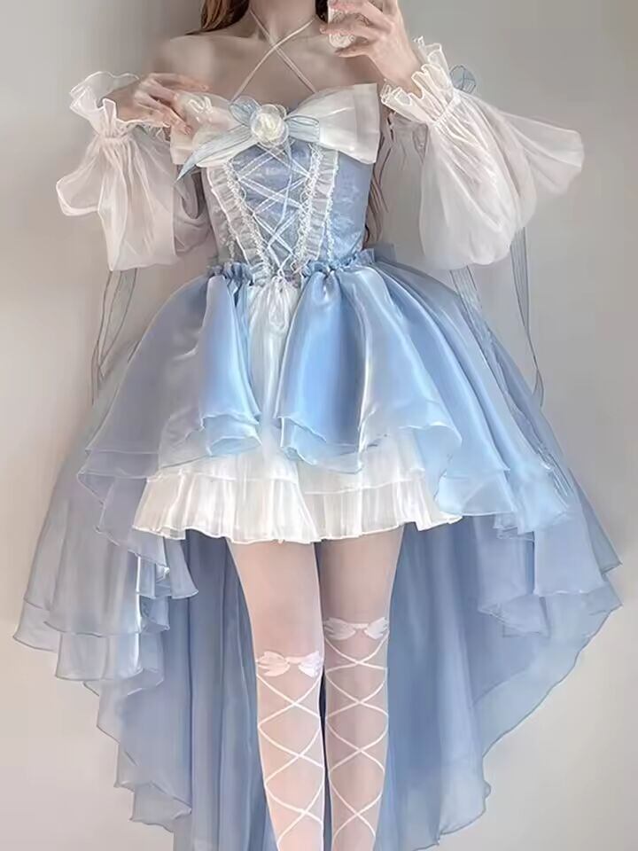 【送料無料◎】 2024 新しいフレンチロマンチックなエレガントなドレス不規則なコスプレプリンセスパフスリーブちょう結びフラワーメッシュファンタスティック妖精ドレス