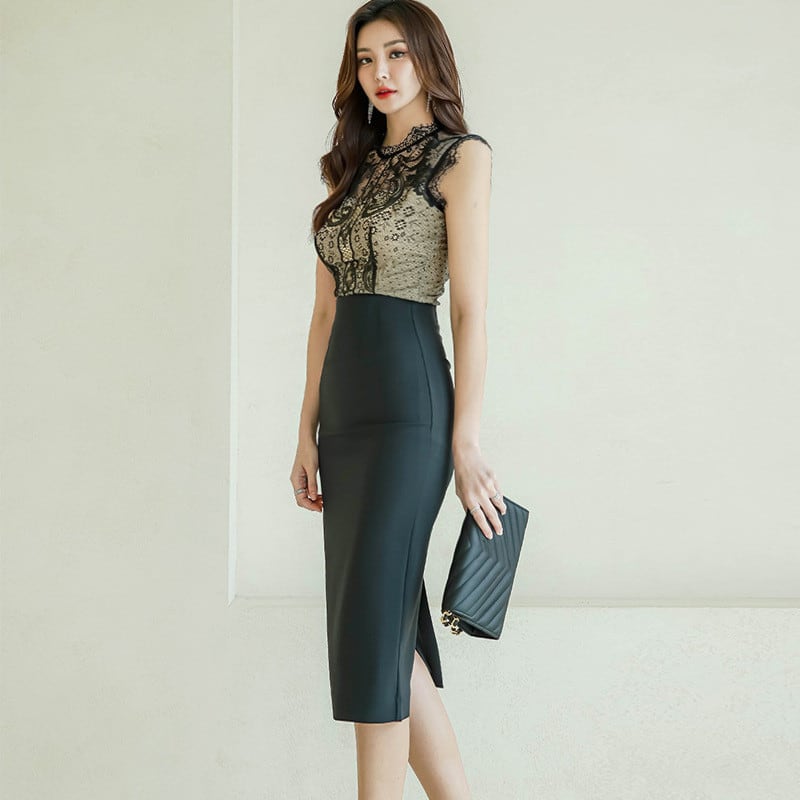 スリット入りのタイトワンピースはセクシーで大人の雰囲気を醸し出します。