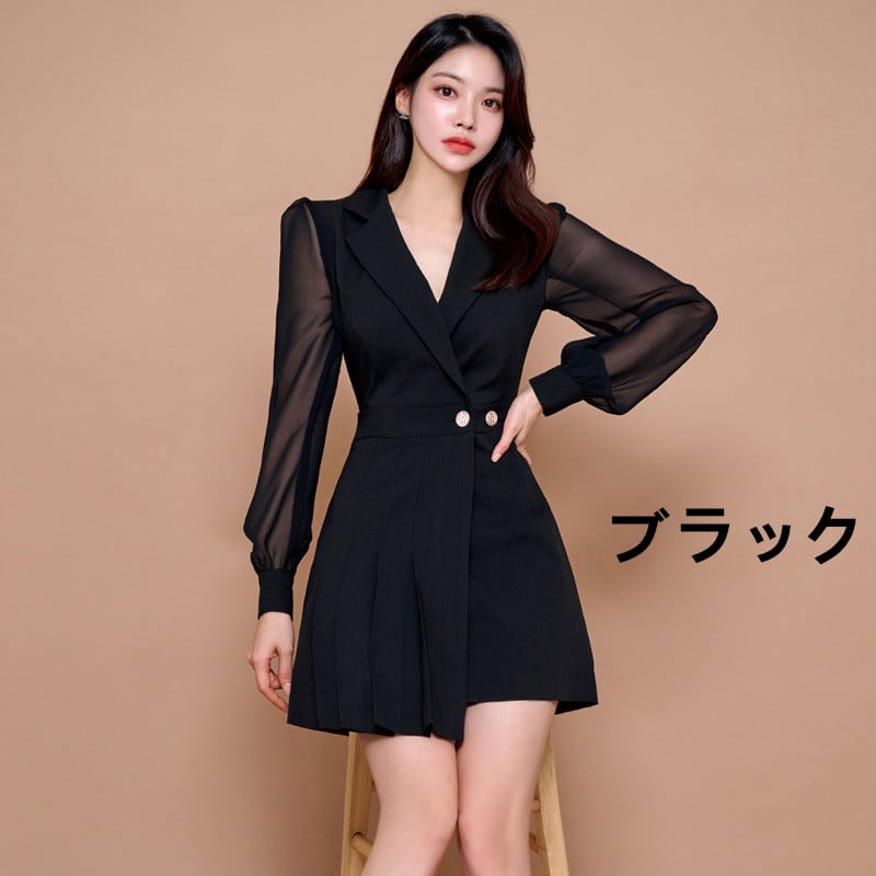 ◎【送料無料】ワンピース 切替え ショートワンピース レディース スーツ 長袖ワンピース 洋服 ステンカラー ミニドレス