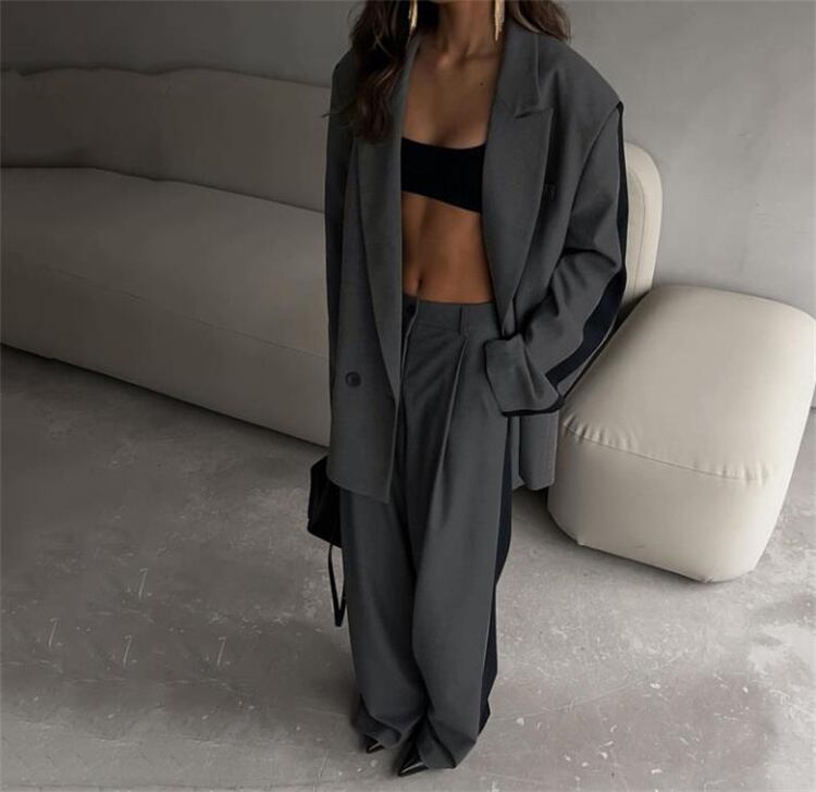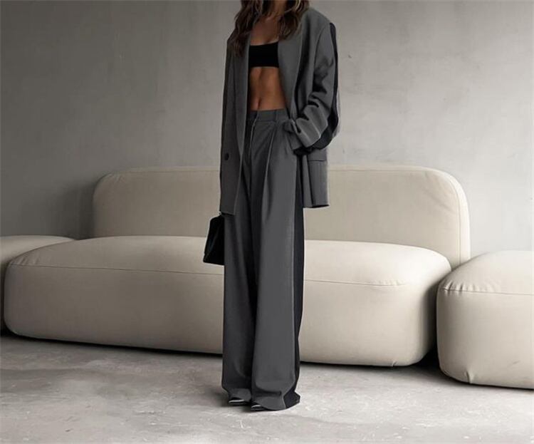 ラペルジャケットとワイドパンツ オフィス対応 ルーズフィット 2点セット