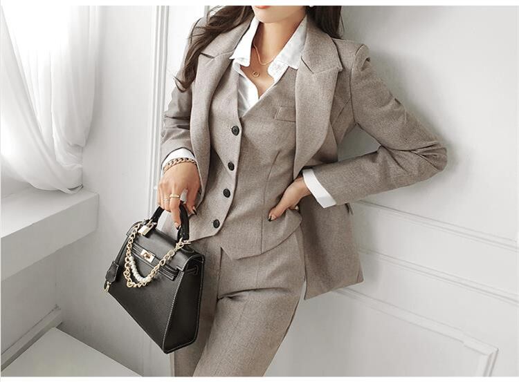ウエストライン シェイプ オフィスウェア セット:ジャケット・ベスト・パンツ 2025秋
