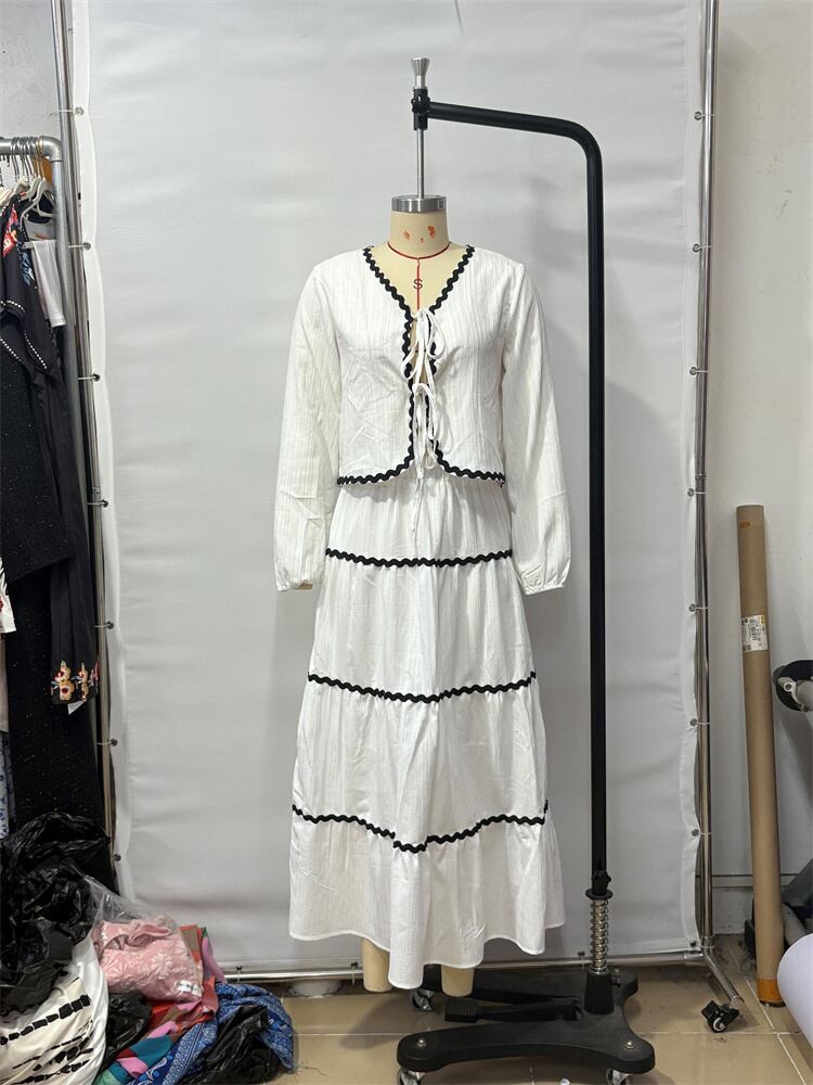 ビーチ用 タイアップデザインインブラウスとプリントミディスカートのセットアップ