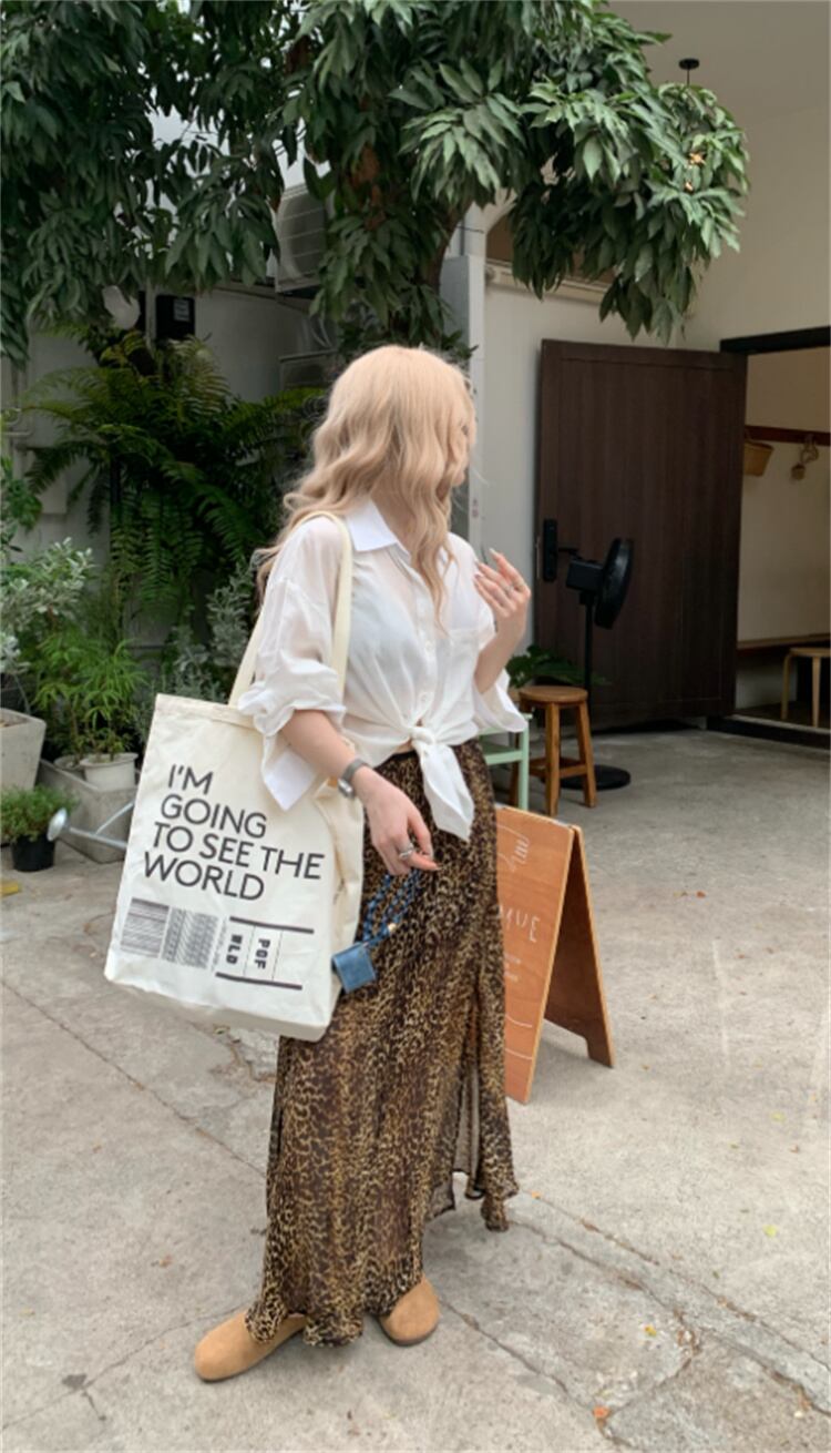 ◎【送料無料】大きいサイズ ビンンテージ風 スリット付き アニマルプリント ロングスカート 夏用