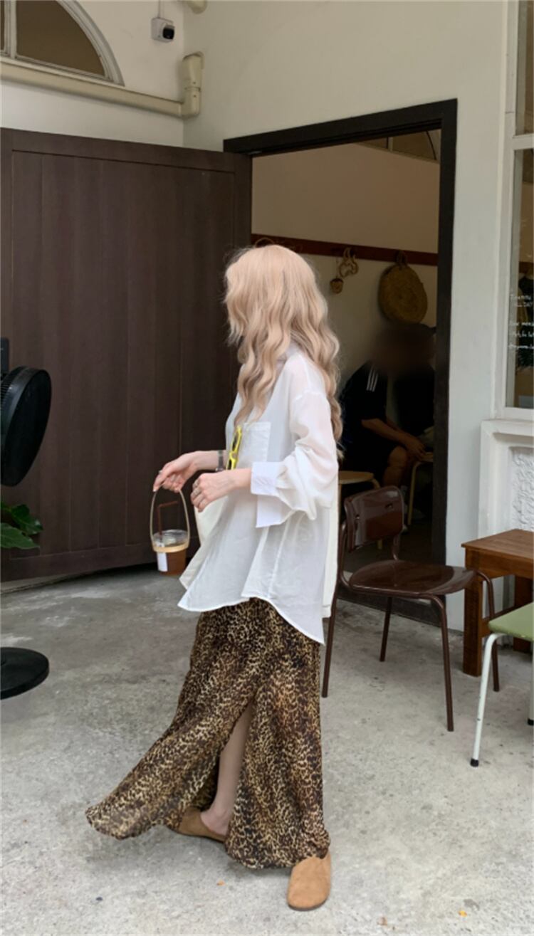 大きいサイズ ビンンテージ風 スリット付き アニマルプリント ロングスカート 夏用