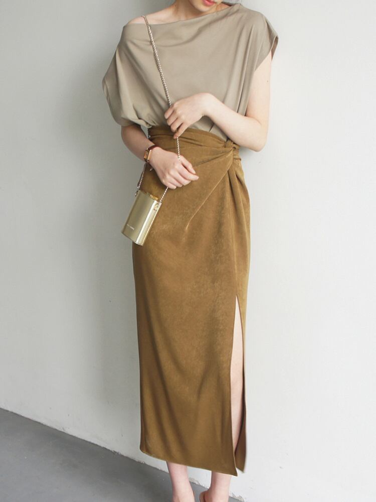 大人可愛い2点セット ショートスリーブTシャツ&膝下丈スカート サイドスリット入り