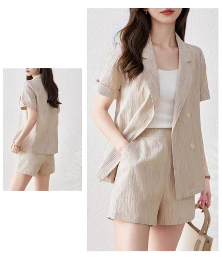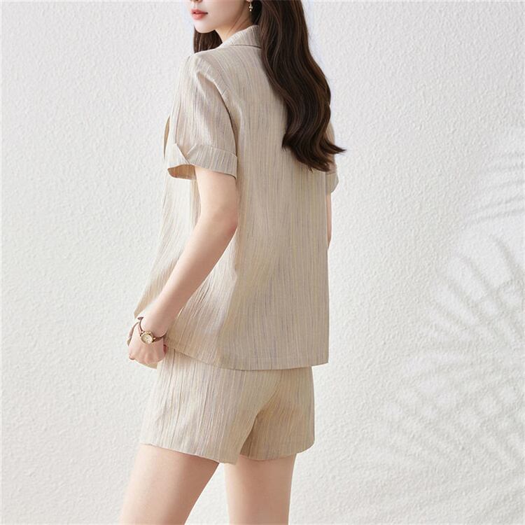 2025夏 新作 ビジネスタイプ スーツネックシャツ3点セット 夏用オフィスカジュアル 短パン組み合わせ