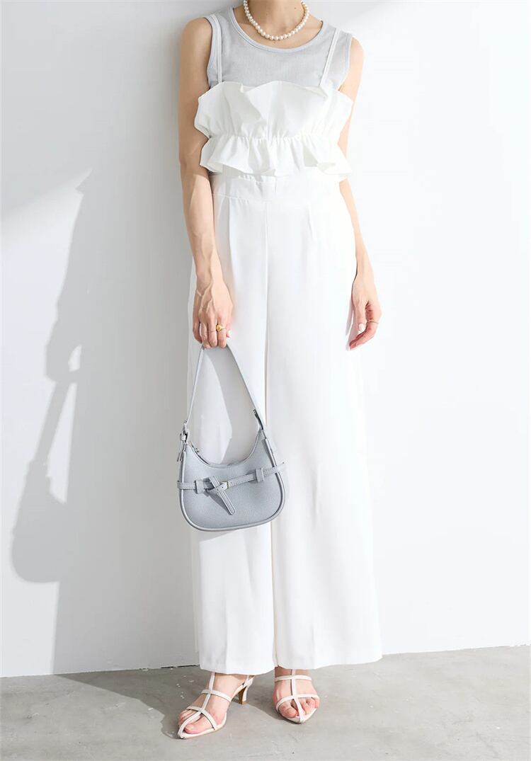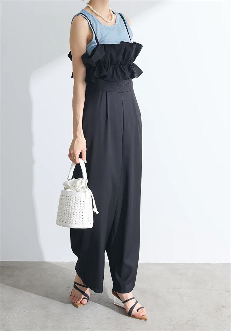 【2025新作】フリルデザイン オーバーオール ワイドパンツ サスペンダーズ ストラップ付き