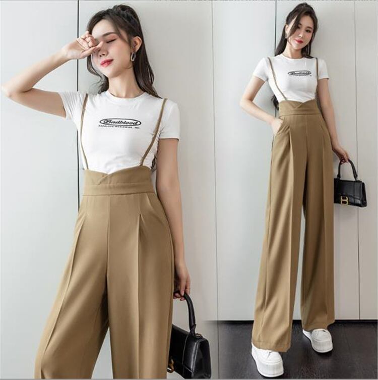 韓国版 ハイウエスト ワイド脚 サロペット 女性 ゆったり ストレート キャミソール