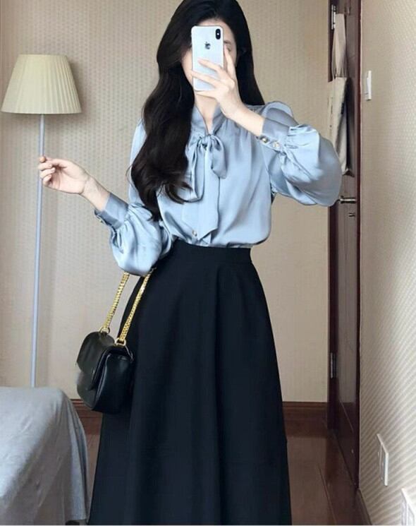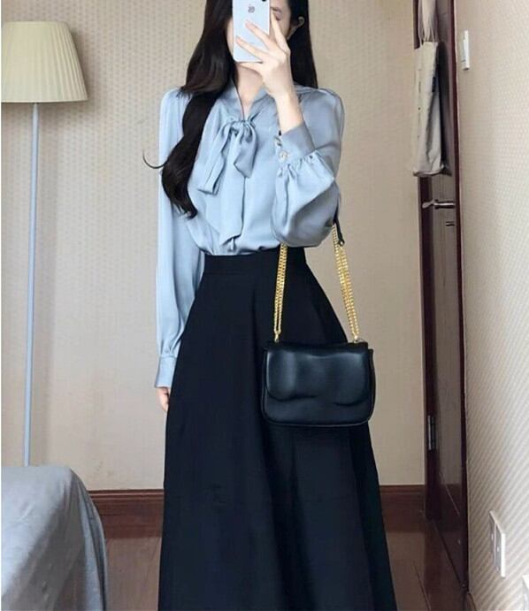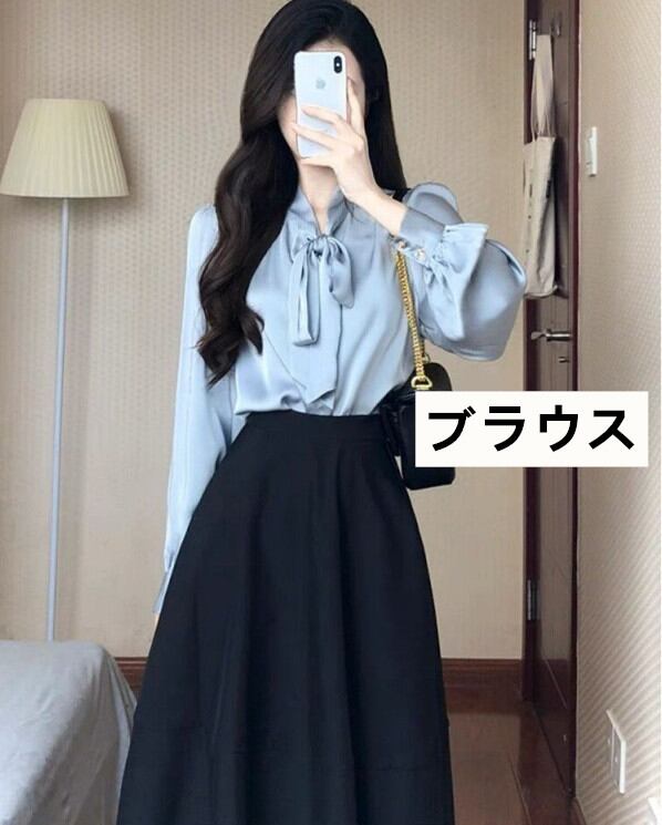 ◎【送料無料】シャツブラウス ロングスカート 上下セット Tシャツ オフィス キャリア 仕事 セットアップ ママスーツ
