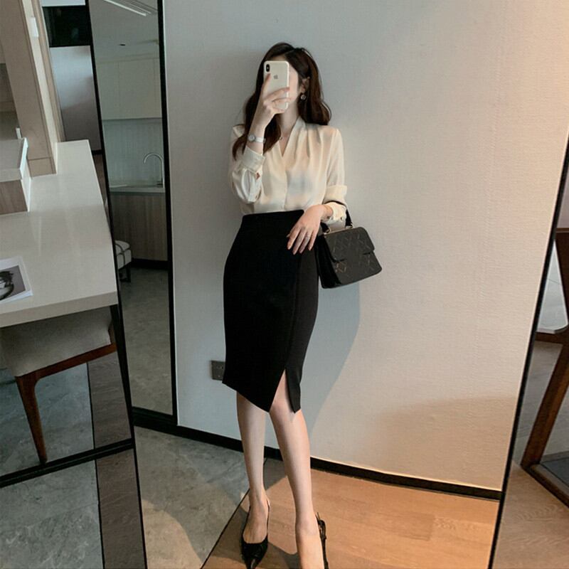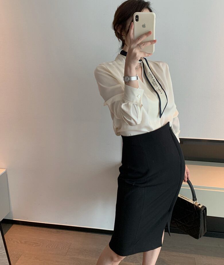 ◎【送料無料】セットアップ ブラウス スカート 上下セット 韓国ファッション 2点セット ミディアム丈スカート 通勤 OL