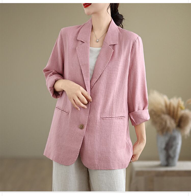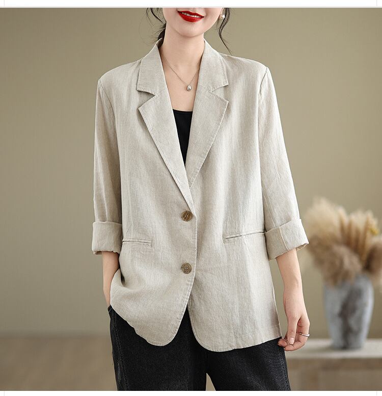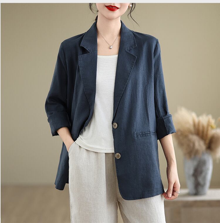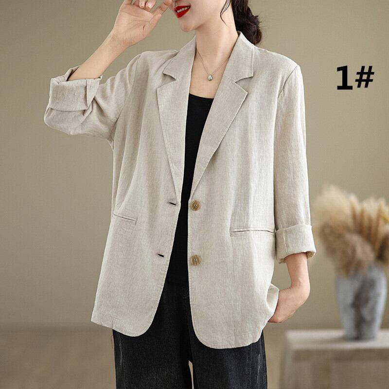 ◎【送料無料】スーツ 綿麻 アウター 無地 ビッグシルエット 羽織 上着 ジャケット レディース シンプル カジュアル