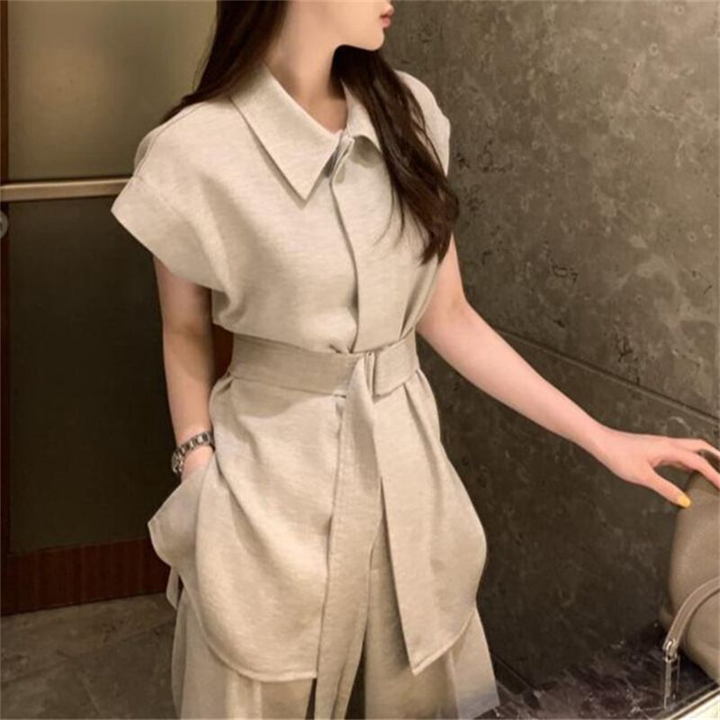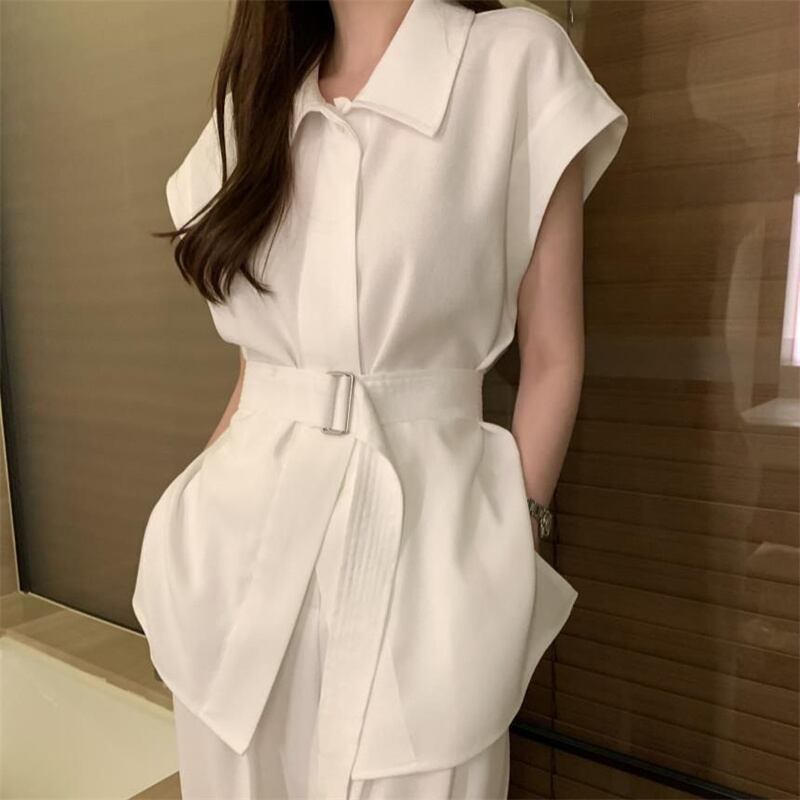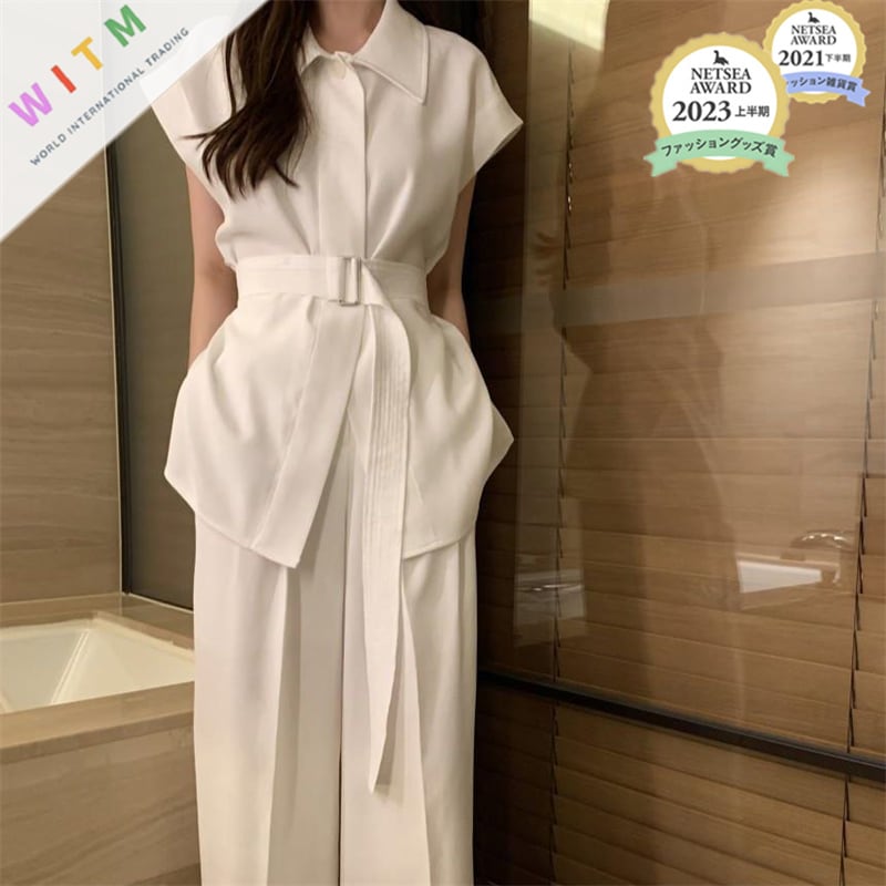 ◎【送料無料】スーツ Vネック 2点セット トップス ワイドパンツ ノースリーブ 袖なし 着回し レディース カジュアル 夏