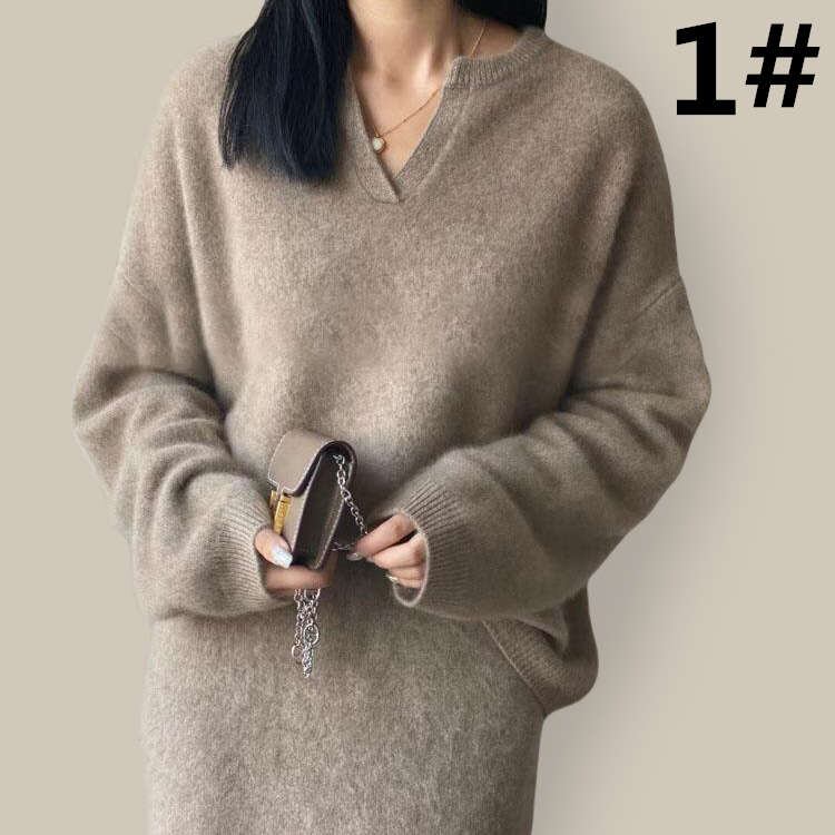 ◎【送料無料】Vネック トップス 韓国 ニットセーター 長袖 2点セット 体型カバー エレガント ニットスカート 厚手