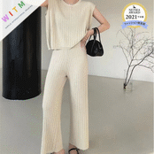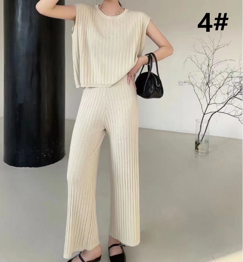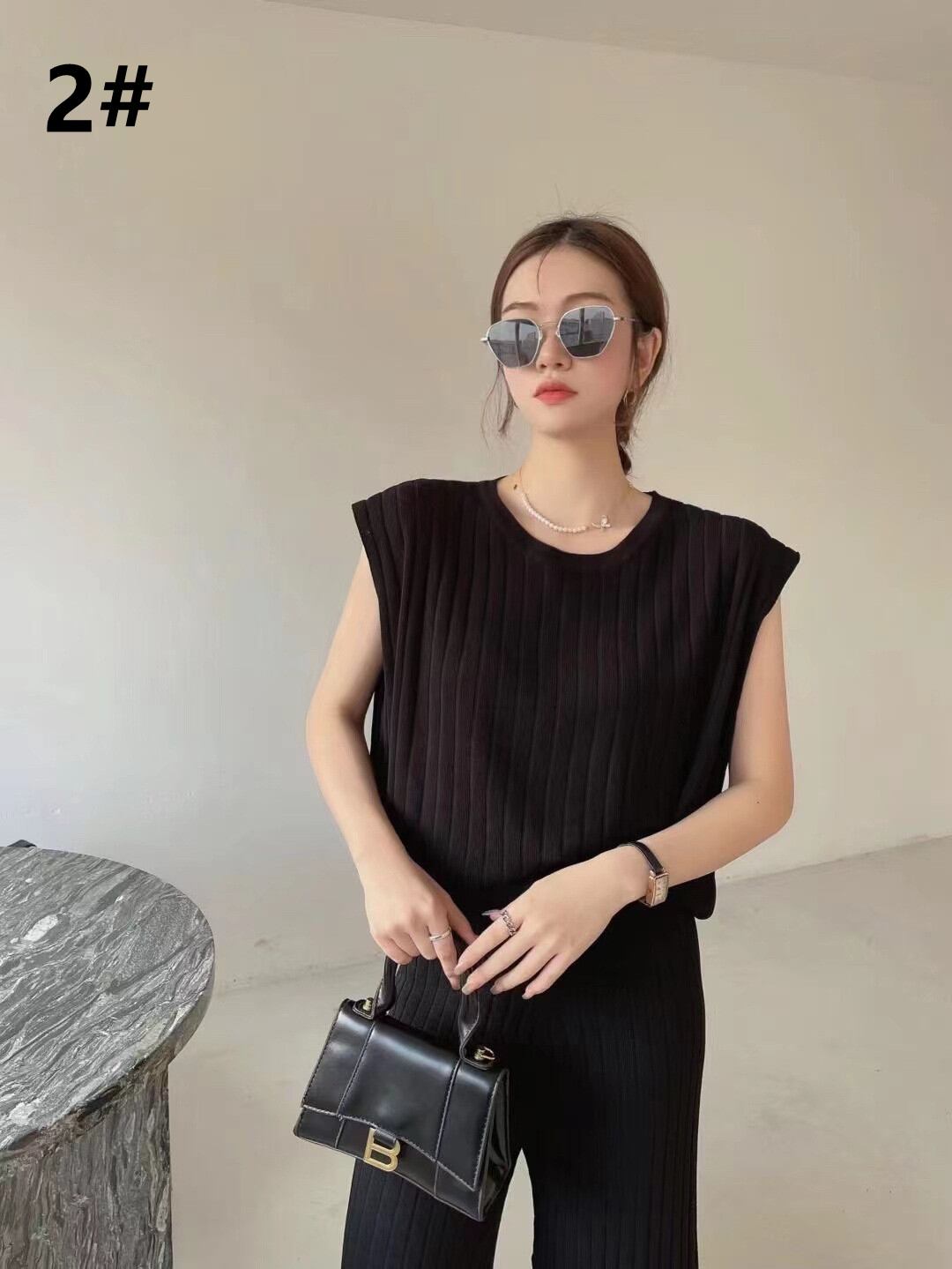 ◎【送料無料】2022春夏新作 2点セットアップ ノースリーブ リボン付き 着回し カジュアル トップス ワイドパンツ